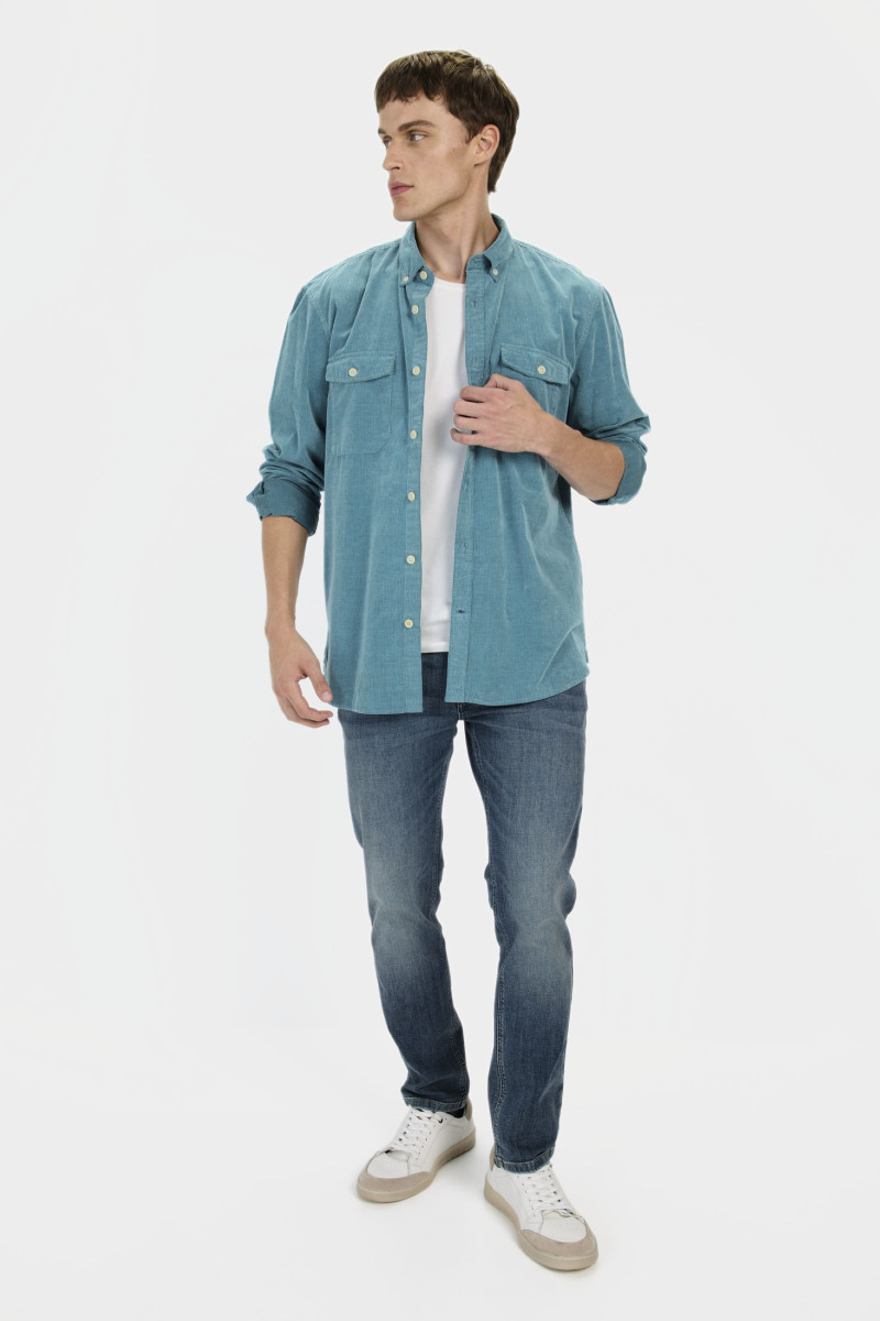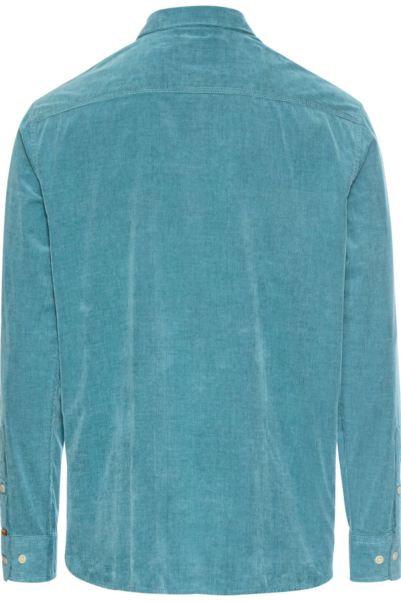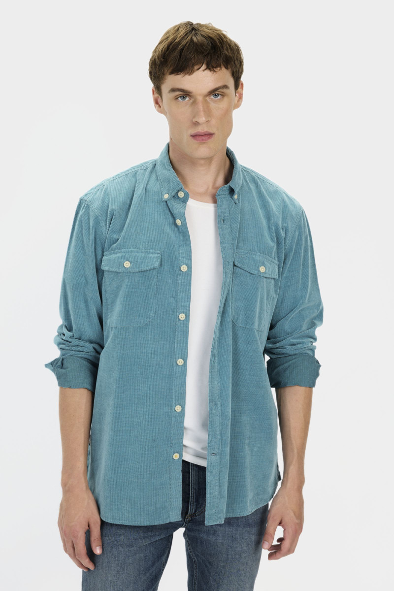 Pánská manšestrová jednobarevná košile v moderním střihu s mírně popadlými švy v ramenou. Ležérní typ button down límec se třemi knoflíky, nakládané kapsy na hrudi s klopou, zapínání na knoflík. Materiálové složení je tvořeno příjemně měkkou tkaninou z bavlněného vlákna prémiové kvality, které je prodyšné a představuje záruku vysoce komfortního pocitu v průběhu nošení. Trendy artikl, který bude dokonale vypadat v ležérním outfitu s podkladovým trikem a ohrnutými rukávy.