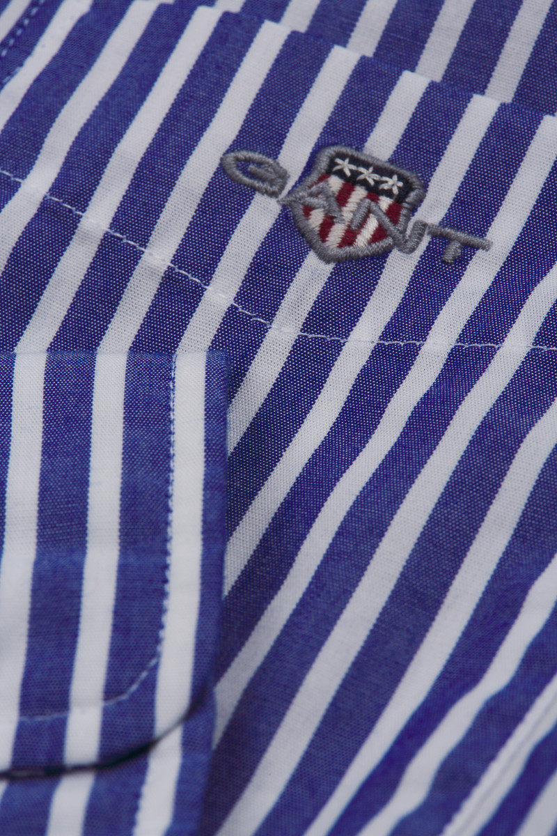 Dětská pruhovaná košile rovného střihu. Sportovně-elegantní design s ikonickým button down límcem a knoflíky na zapínání doplňuje dlouhý rukáv s nastavitelnou manžetou a sámek s poutkem na zádech pro větší volnost pohybu. Nechybí originální logo Gant vyšité na kapsičce. Lehká popelínová tkanina se 100 % podílem prémiové bavlny zaručuje dokonalou prodyšnost, příjemný pocit při nošení a nenáročnou údržbu. Výborně kombinovatelný kousek, který bude vypadat perfektně v kombinaci s chino kalhotami.