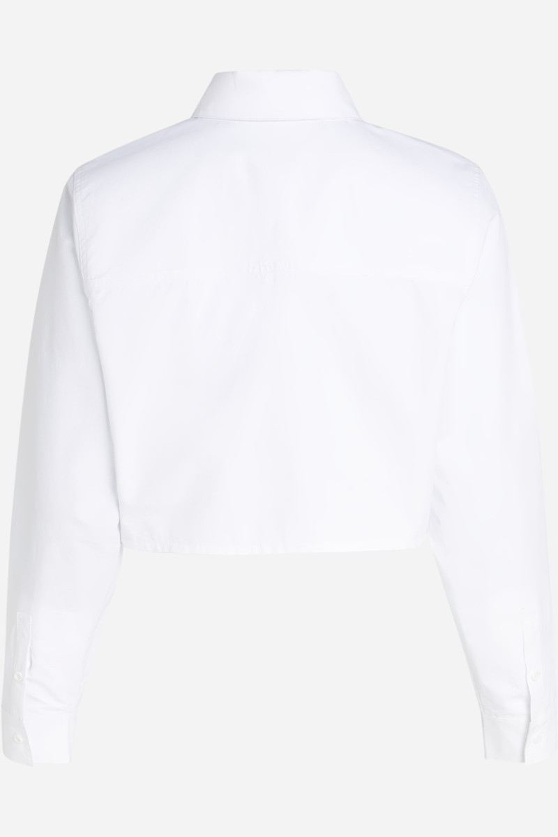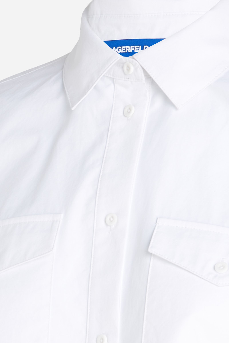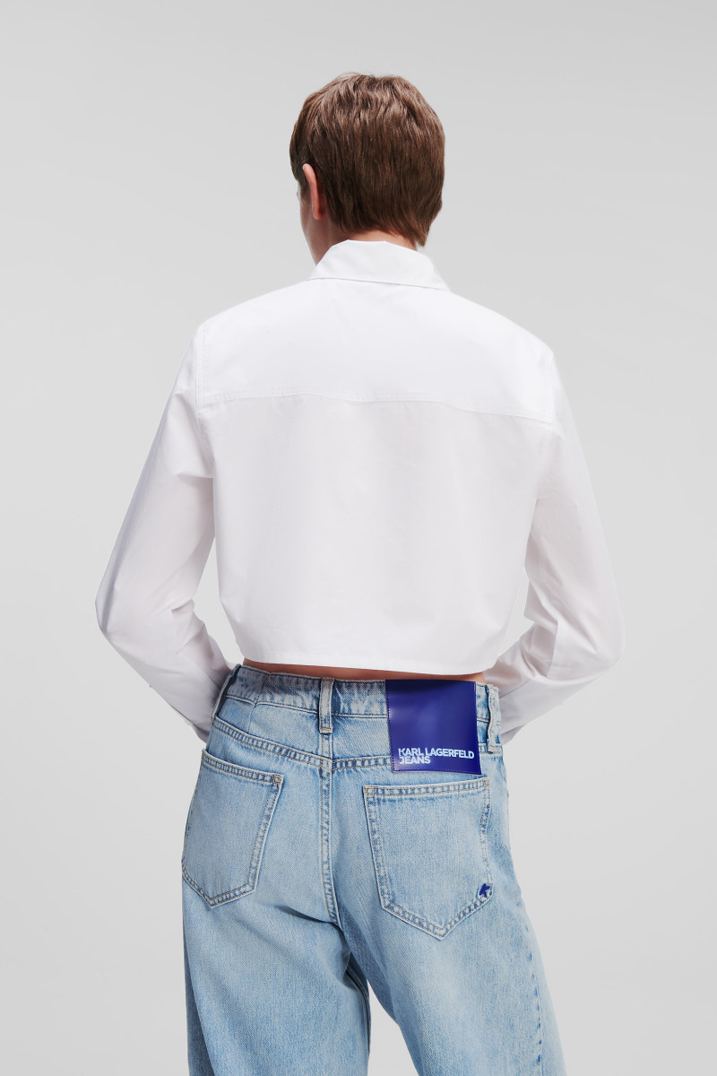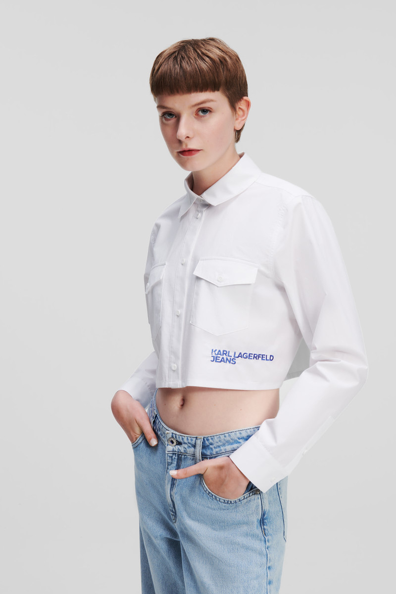Dámské tričko se zkrácenou délkou zdobené výrazným vyšitým logem Karl Lagerfeld Jeans. Zapínání na knoflíky, náprsní kapsy s knoflíky a manžety na rukávech. Tato minimalistická košile se skvěle hodí k džínám s vysokým pasem nebo jako vrstva pod šaty.
