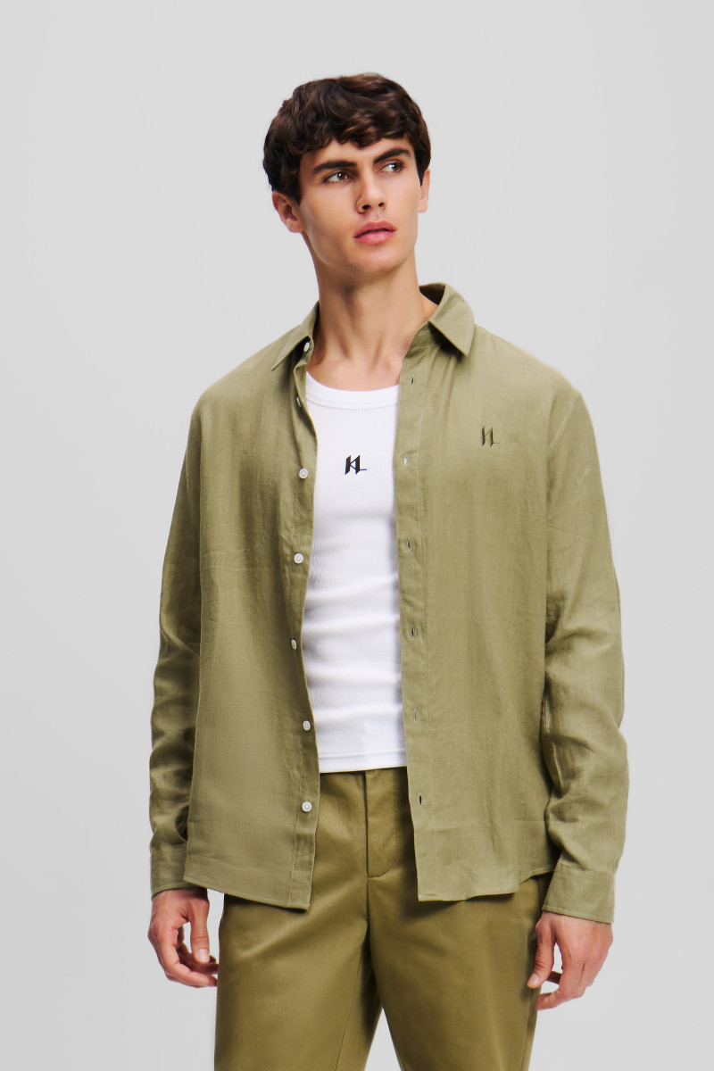KOŠILE KARL LAGERFELD KL EMBROIDERY LINEN SHIRT DUSKY GREEN
