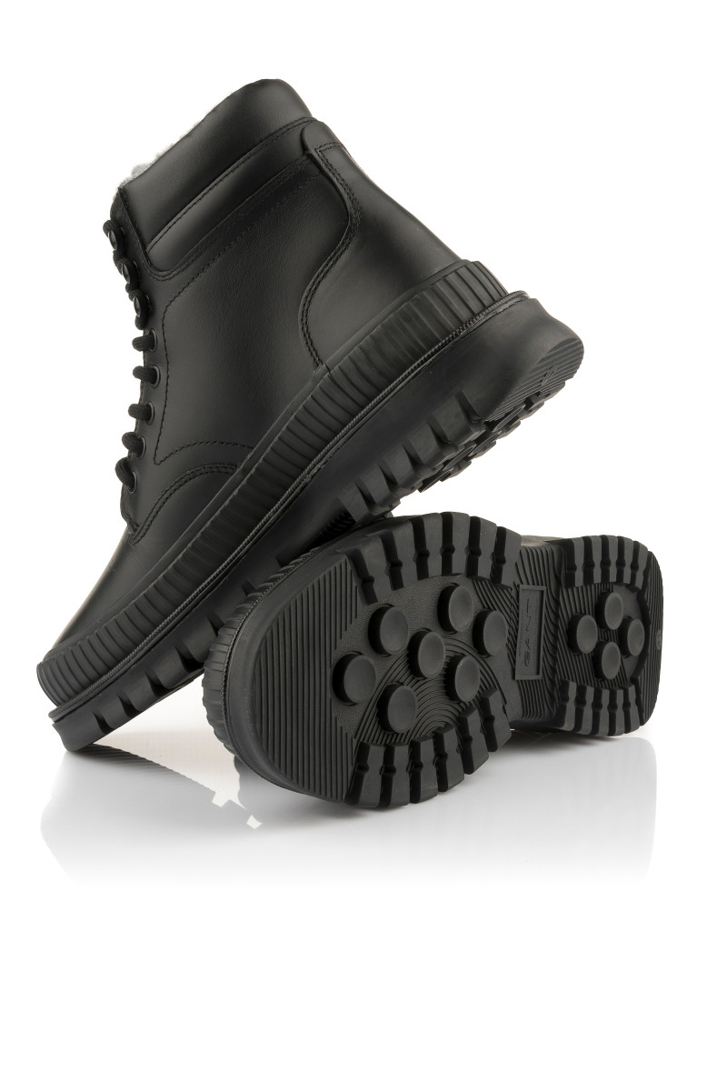 Pánské kotníkové boty na šněrování, které je prakticky zakončeno kovovými úchyty pro pevné stažení tkaniček. Svrchní materiál tvoří odolná, zároveň příjemně měkká hovězí useň prémiové kvality zdobená elegantním brandingem vytlačeným na boční straně boty. Jemné a při chůzi dokonale poddajné podšití doplňuje výrazně vzorovaná pryžová podešev, která svým efektním lemováním spolehlivě izoluje od vlhka. Velmi pohodlný typ vycházkové obuvi, která vkusně podtrhne vzhled celého outfitu.