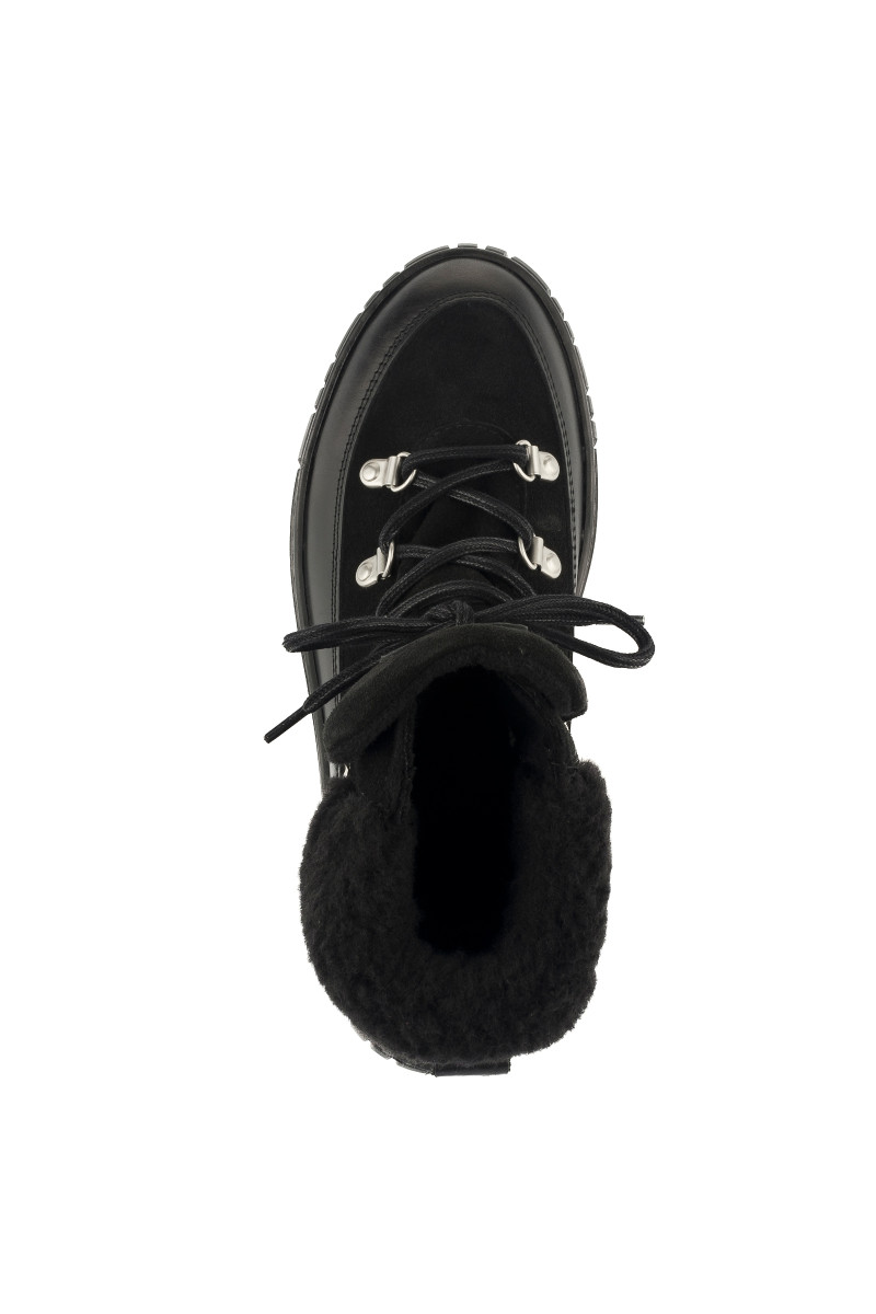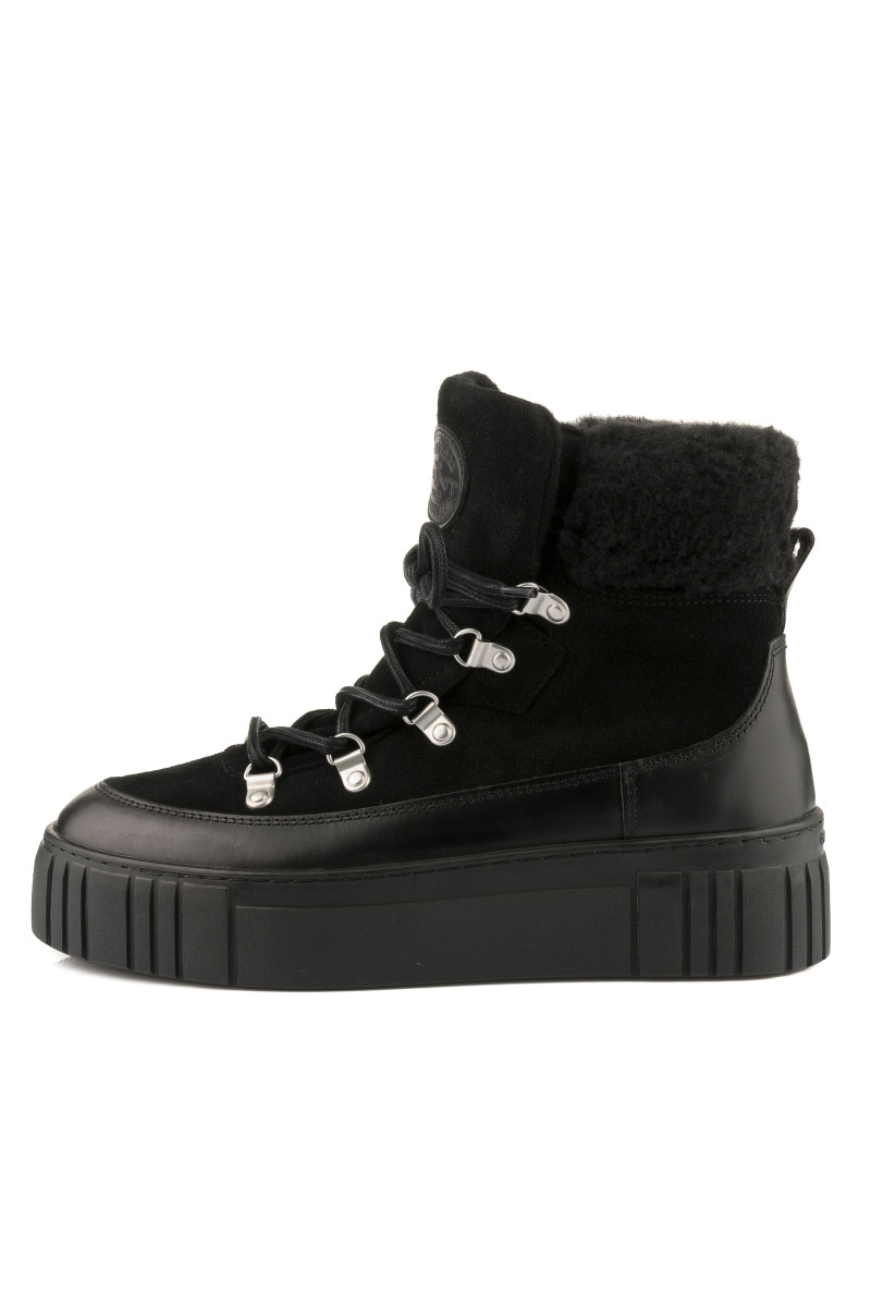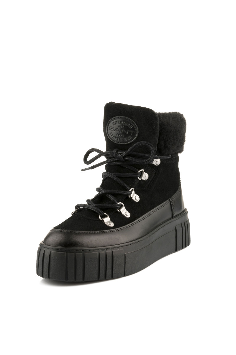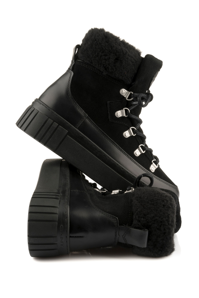 Zimní kotníčkové boty z broušené a hladké hovězí usně prémiové kvality. Sportovní design s kovovými úchyty a pevnými tkaničkami na šněrování doplňuje zvýšená pryžová podrážka se strukturovaným vzorem. Boty jsou ozdobeny vlněným lemem a logem Gant našitým na jazyku. Nechybí poutko na patě pro pohodlnější nazouvání. Hřejivý vlněný interiér zvyšuje tepelnou izolaci. Dokonale stylová a praktická obuv, která vám poskytne maximální komfort i v těch nejchladnějších dnech.