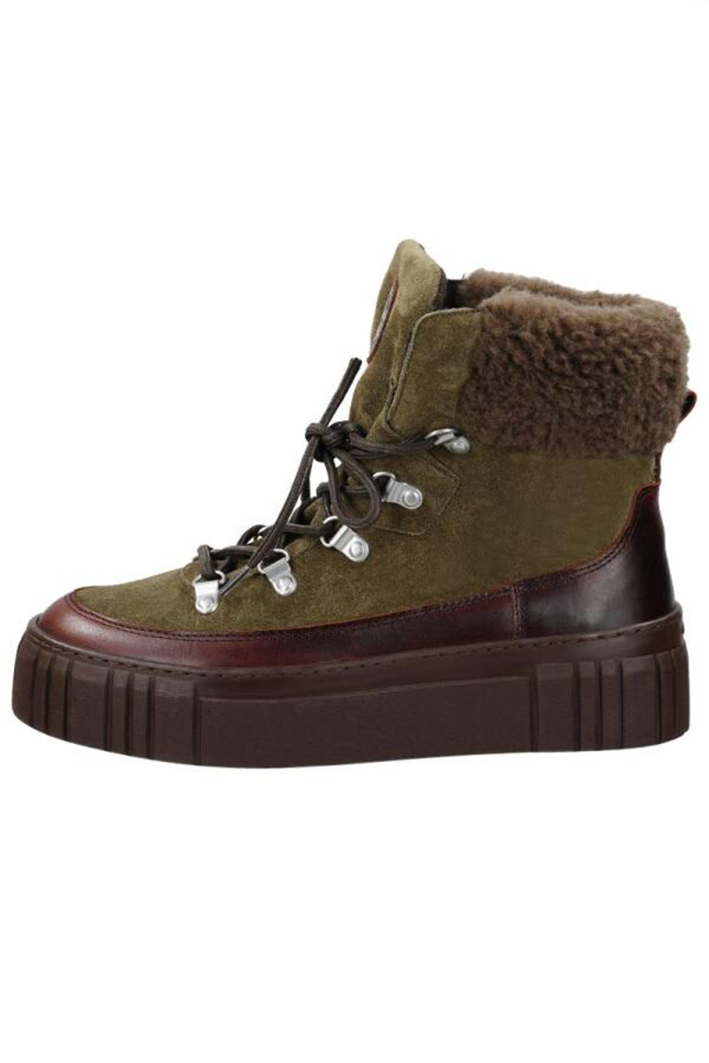 Zimní kotníčkové boty z broušené a hladké hovězí usně prémiové kvality. Sportovní design s kovovými úchyty a pevnými tkaničkami na šněrování doplňuje zvýšená pryžová podrážka se strukturovaným vzorem. Boty jsou ozdobeny vlněným lemem a logem Gant našitým na jazyku. Nechybí poutko na patě pro pohodlnější nazouvání. Hřejivý vlněný interiér zvyšuje tepelnou izolaci. Dokonale stylová a praktická obuv, která vám poskytne maximální komfort i v těch nejchladnějších dnech.