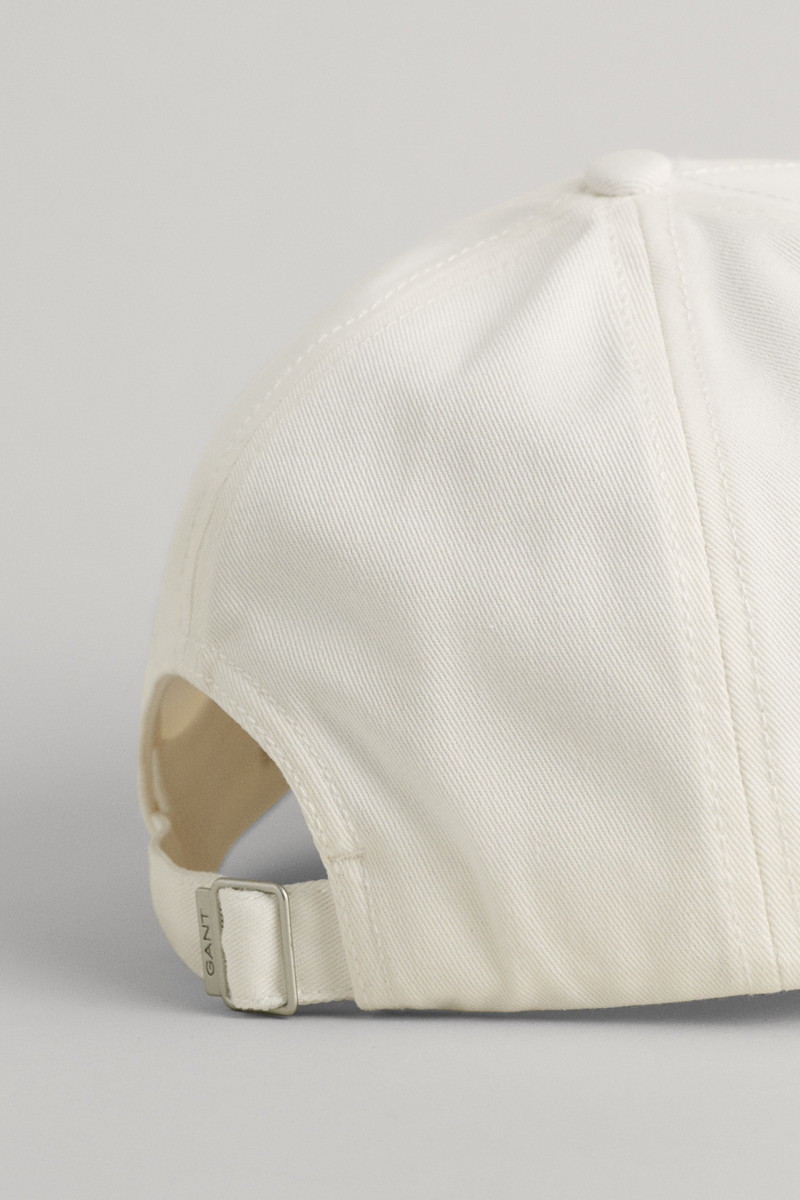 Dětská baseballka s vyšitým logem značky Gant, v ikonickém barevném provedení, nad kšiltem. Kovová spona s vygravírovaným nápisem brandu na týlu pro jednoduché nastavení požadovaného rozměru. Materiálové složení tvoří tkanina v odolné twillové vazbě z bavlněného vlákna prémiové kvality, které je příjemné na omak, prodyšné a velmi pohodlné v průběhu nošení. Praktický, všestranně kombinovatelný doplněk volnočasových outfit vhodný i na sportovní aktivity.