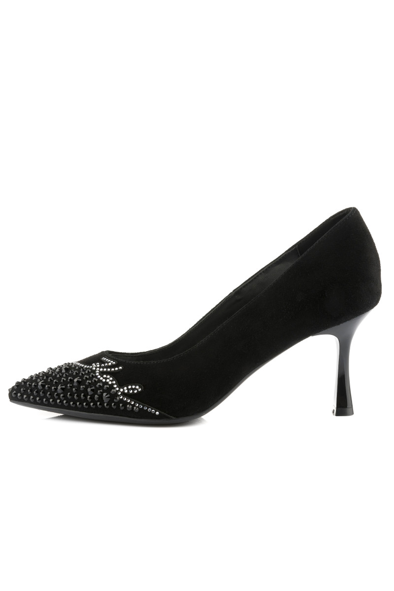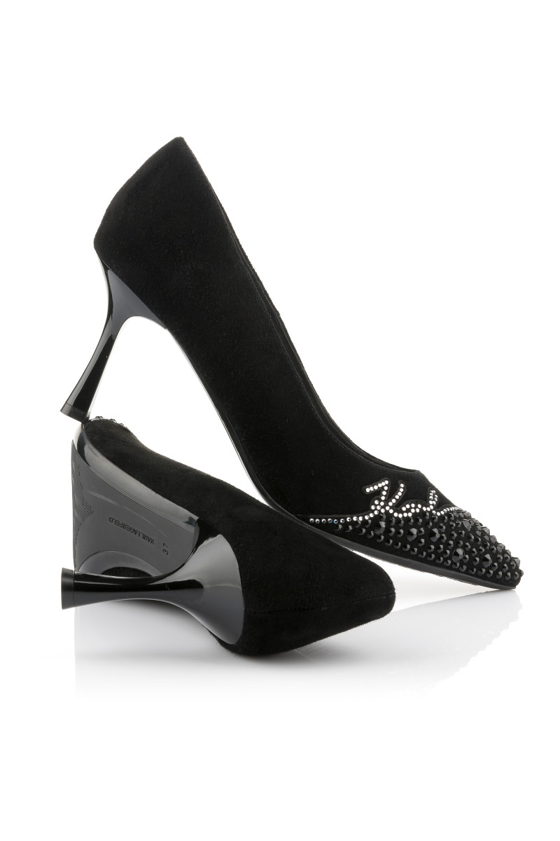 LODIČKY KARL LAGERFELD SIENNA SIGNATURE PUMP BLACK SUEDE W/SILVER