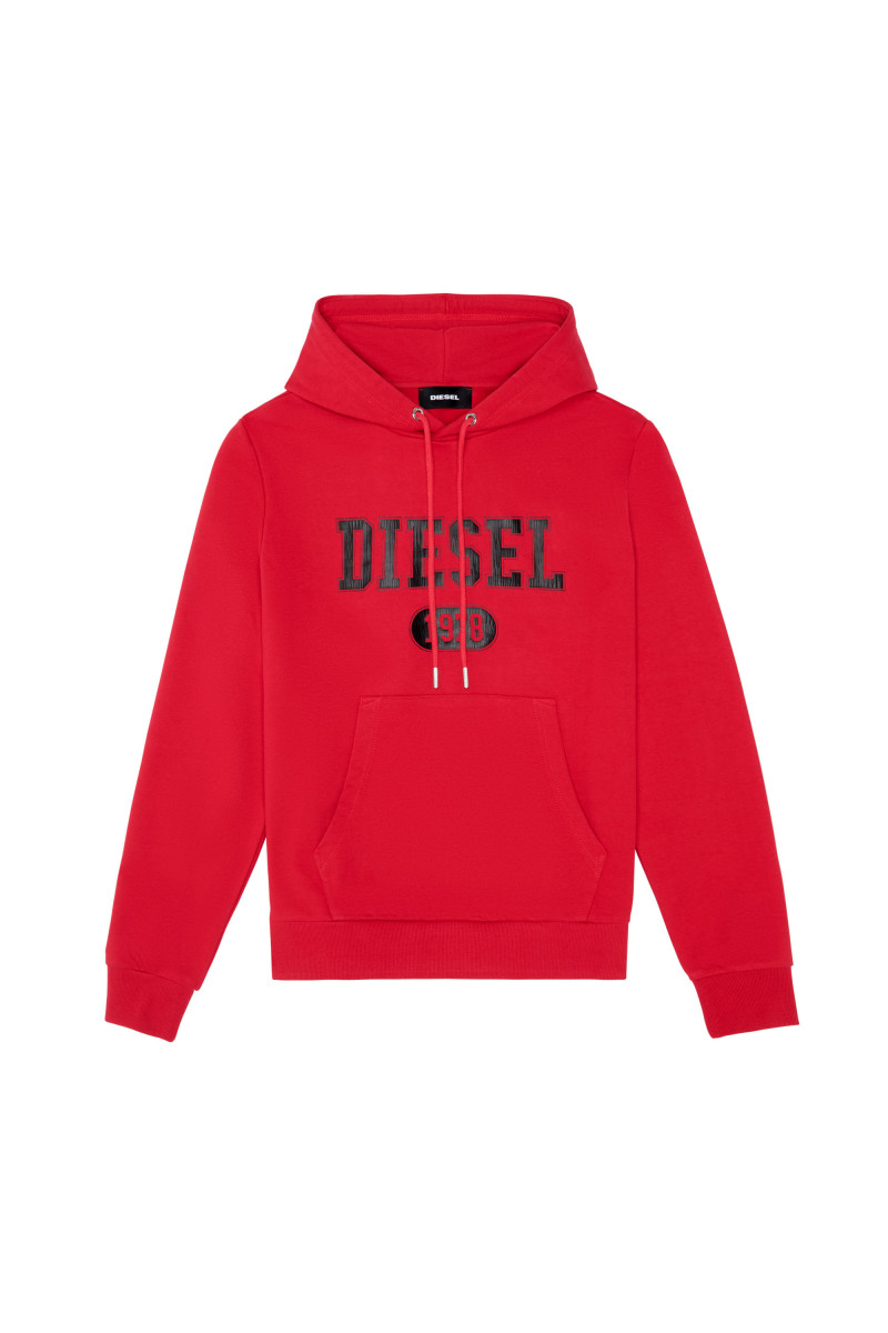 Pánská mikina s klokaní kapsou. Rovný a volný regular střih. Kapuce se stahovacími šňůrkami s kovovými konci. Manžety a lem zdobeny žebrováním. Na přední straně zdobena kontrastním logem „Diesel 1978“ s popraskaným efektem. Ušita z lehkého žerzeje ze směsi bavlny se zpětnou smyčkou. Materiál: 60% Bavlna 40% Polyester. Model má na sobě velikost L a měří 188 cm.
