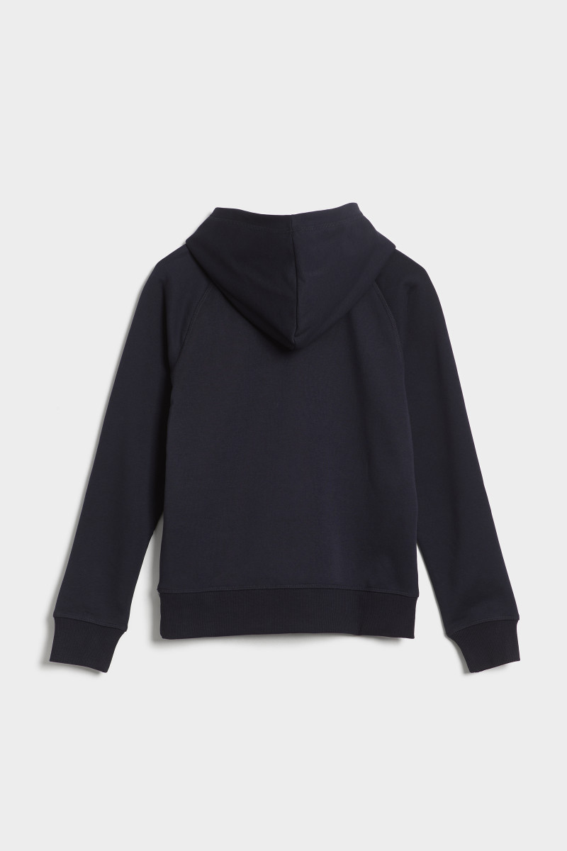 Dětská mikina přes hlavu s kapucí a klokaní kapsou. Pružné náplety v pase i na zápěstí. Ikonické logo značky vyšité na hrudi. Kvalitní materiálové složení tvoří prémiové bavlněné vlákno, které vyniká svou hřejivostí, avšak jedinečnou prodyšností. Příjemně měkký žerzej je díky své poddajnosti velmi pohodlný v průběhu nošení, tvarově i barevně stálý a nenáročný na údržbu. Nepostradatelný základ volnočasových outfitů, vhodný na chvíle odpočinku i sportovní vyžití, ideálně v kombinaci s úpletovými kalhotami ze stejné kolekce.