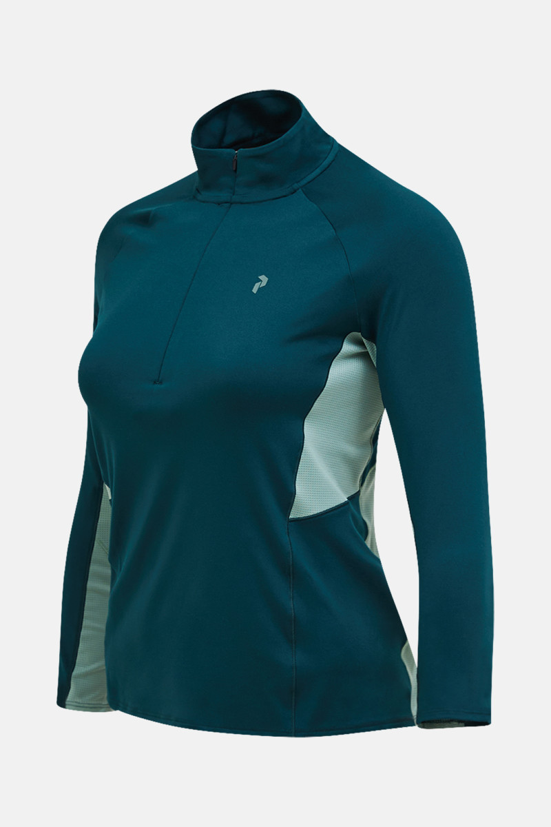 Dámská mikina se stojáčkem. Úzký střih, který přilne k tělu a vytváří tak ideální vrstvu, která se s Vámi pohybuje bez omezení a zároveň vytváří elegantní siluetu. Neviditelný poloviční zip vpředu účinně odvádí vlhkost od těla, zatímco síťovaný panel na zádech poskytuje extra ventilaci a zajišťuje tak pohodlí. Dalšími prvky jsou silikonová loga Peak Performance na hrudi a zádech, která nabízejí čistý a elegantní vzhled a dlouhé raglánové rukávy. Materiálové složení je z lehkého, rychleschnoucího a extra pružného materiálu, který perfektně udržuje pocit sucha a tepla a zároveň výborně odvádí vlhkost. Mikina je vyrobena ze dvou technických materiálů pro optimální pohodlí: lehkého strečového dresu, který poskytuje nezbytnou regulaci vlhkosti, zatímco strečová síťovina zlepšuje proudění vzduchu díky své otevřené struktuře. Velmi praktický a pohodlný základní kousek, který se stane oblíbenou a neodmyslitelnou součástí Vaší sportovní výbavy a který můžete nosit jako základní vrstvu pod mikinu nebo samostatně.