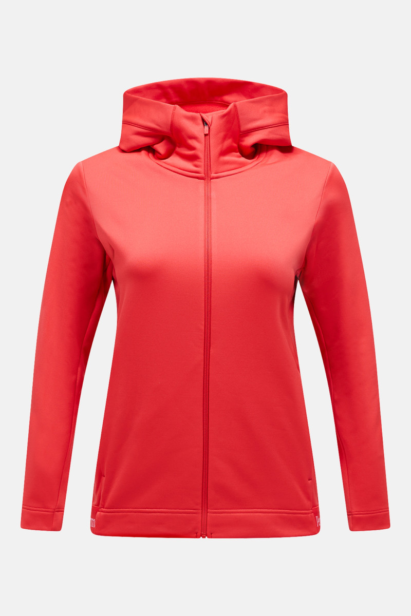 Dámská mikina s kapucí. Rovný střih, středový zip, výrazný potisk značky na okraji kapuce a logo P na rukávu doplňují boční kapsy se zipem, klasické rukávy, elastický lem s nápisem značky na zadním spodním okraji. Materiálové složení je z částečně recyklovaného, lehkého, rychleschnoucího a pružného materiálu, který výborně odvádí vlhkost a udržuje teplo. Celkové zpracování zajišťuje dokonalý komfort během nošení a skvělé funkční vlastnosti. Velmi praktický a nápaditý kousek pro všechna vaše outdoorová dobrodružství.