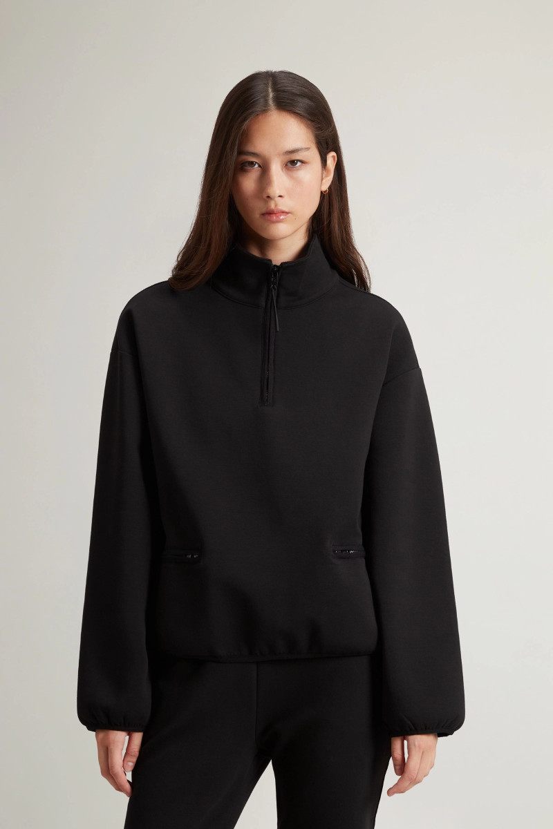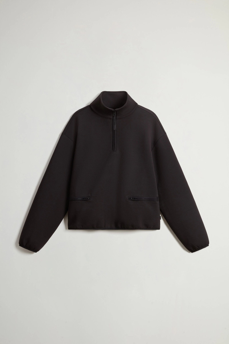 MIKINA WOOLRICH INTERLOCK FLEECE HALF ZIP BLACK