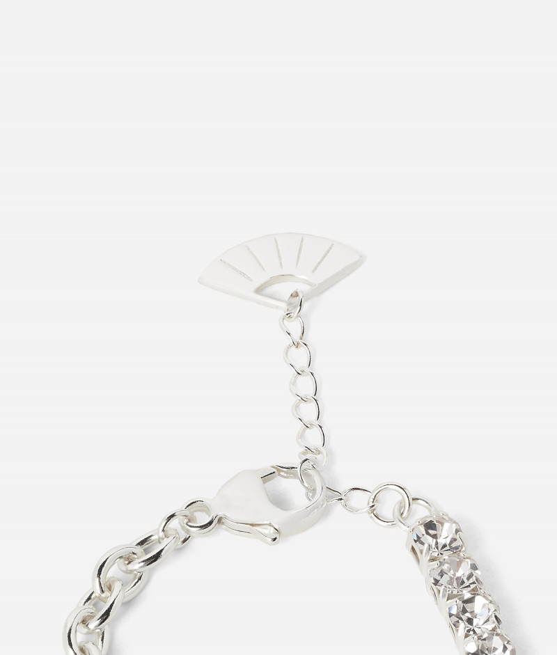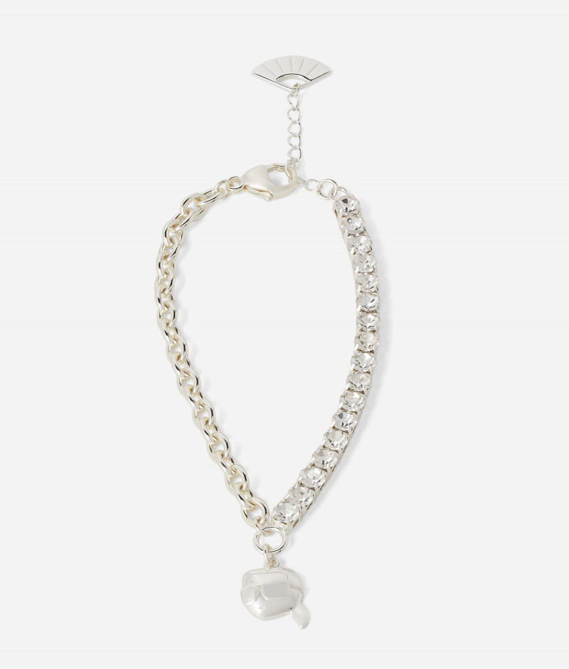 Originální mosazný náramek s nastavitelnou délkou, který zdobí hravý přívěsek s motivem Ikonik Karl 2.0. Kombinaci jemného řetízku a řady třpytivých krystalů doplňuje humrová spona na zapínání ukončená drobným přívěskem ve tvaru ikonického vějíře. Originální dárek i nezaměnitelně stylový doplněk pro všechny milovníky značky KARL LAGERFELD.