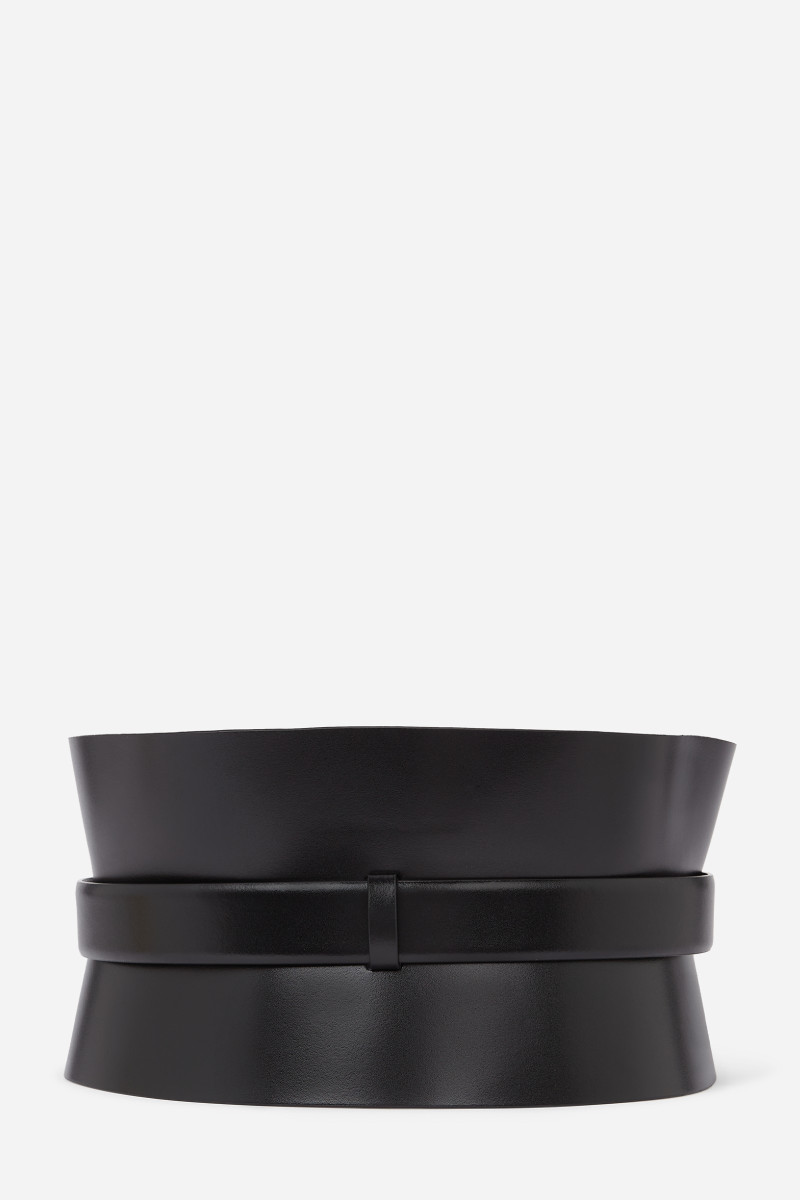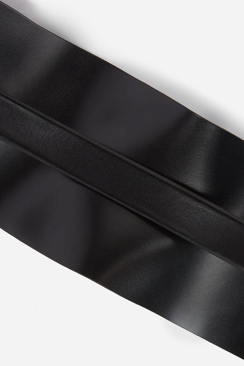 Široký kožený opasek inspirovaný korzetem, který vás zaujme svou nadčasovou rafinovaností a všestranným využitím. Jednobarevný design s kovovou sponou stříbrné barvy doplňuje originální logo K/Autograph umístěné na poutku. Opasek je vyroben z hladké hovězí kůže prémiové kvality, která se vyznačuje mimořádnou pevností a odolností. Tento luxusní doplněk efektivně zvýrazní vaši ženskou siluetu v kombinaci se šaty, oversized košilí, kalhotami nebo sukní.