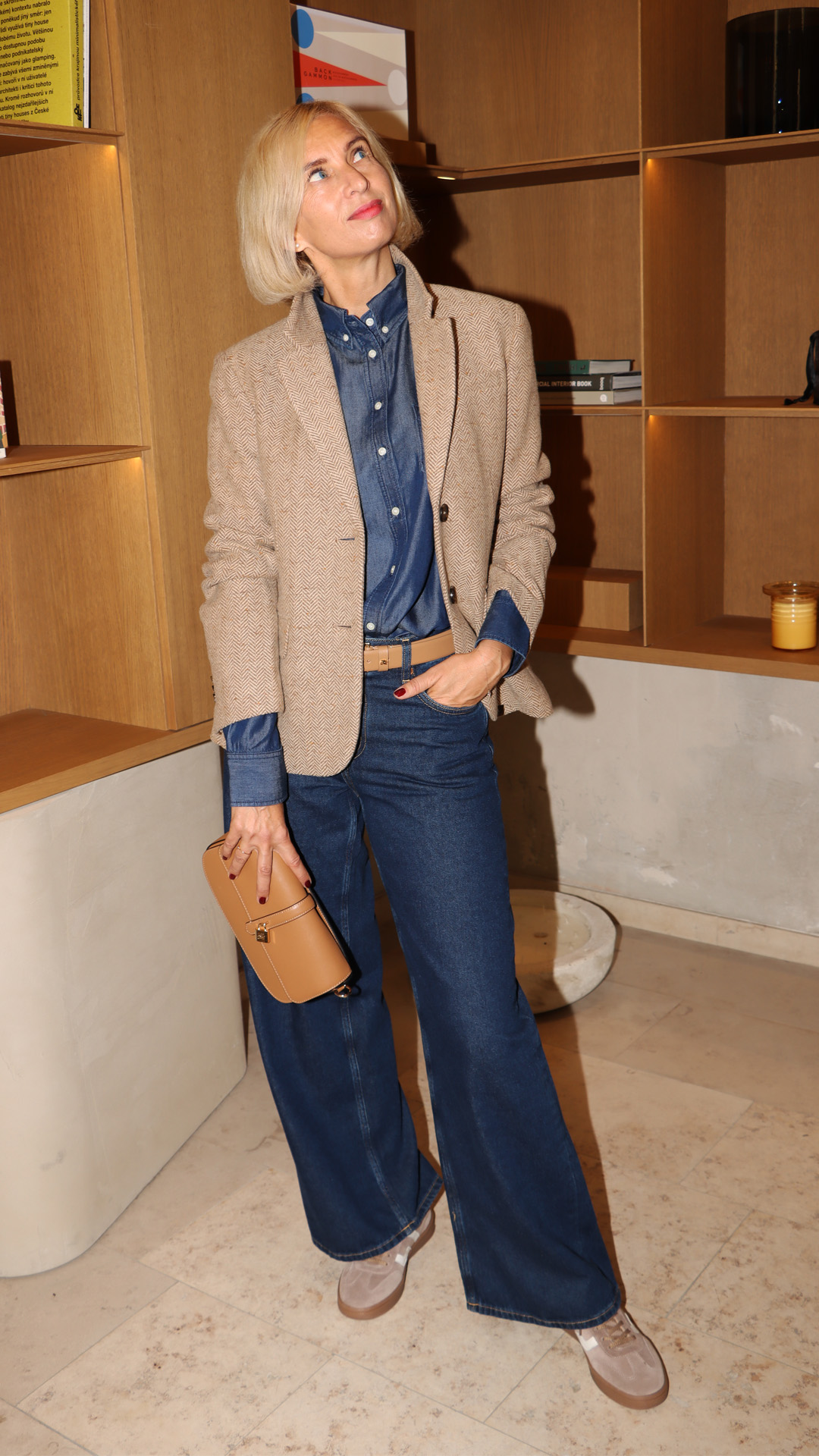 Oblékněte kousky, které spojují to nejlepší z chytré elegance a uvolněného městského stylu. Precizně střižené herringbone sako, indigo košile, moderní široké džíny, pohodlné tenisky v přírodních tónech a karamelové doplňky KARL LAGERFELD.