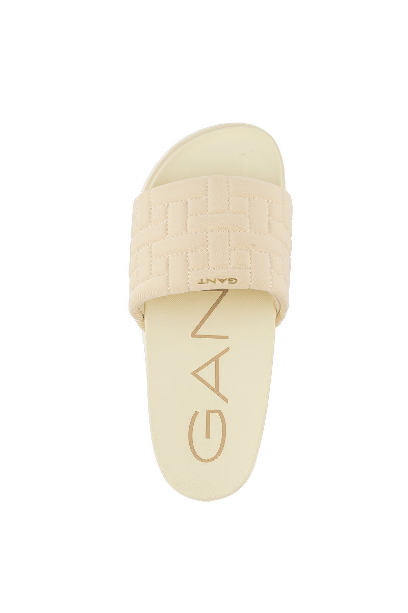 Dámské pantofle s otevřenou špičkou a volnou patou. Jednobarevný design s prošívanou textilií na povrchu doplňuje decentní logo Gant umístěné na přední straně. Lehký a flexibilní syntetický materiál s ergonomicky tvarovanou stélkou zaručuje maximální pohodlí a příjemný pocit při nošení. Dokonale stylová obuv, která vám zpříjemní horké letní dny.