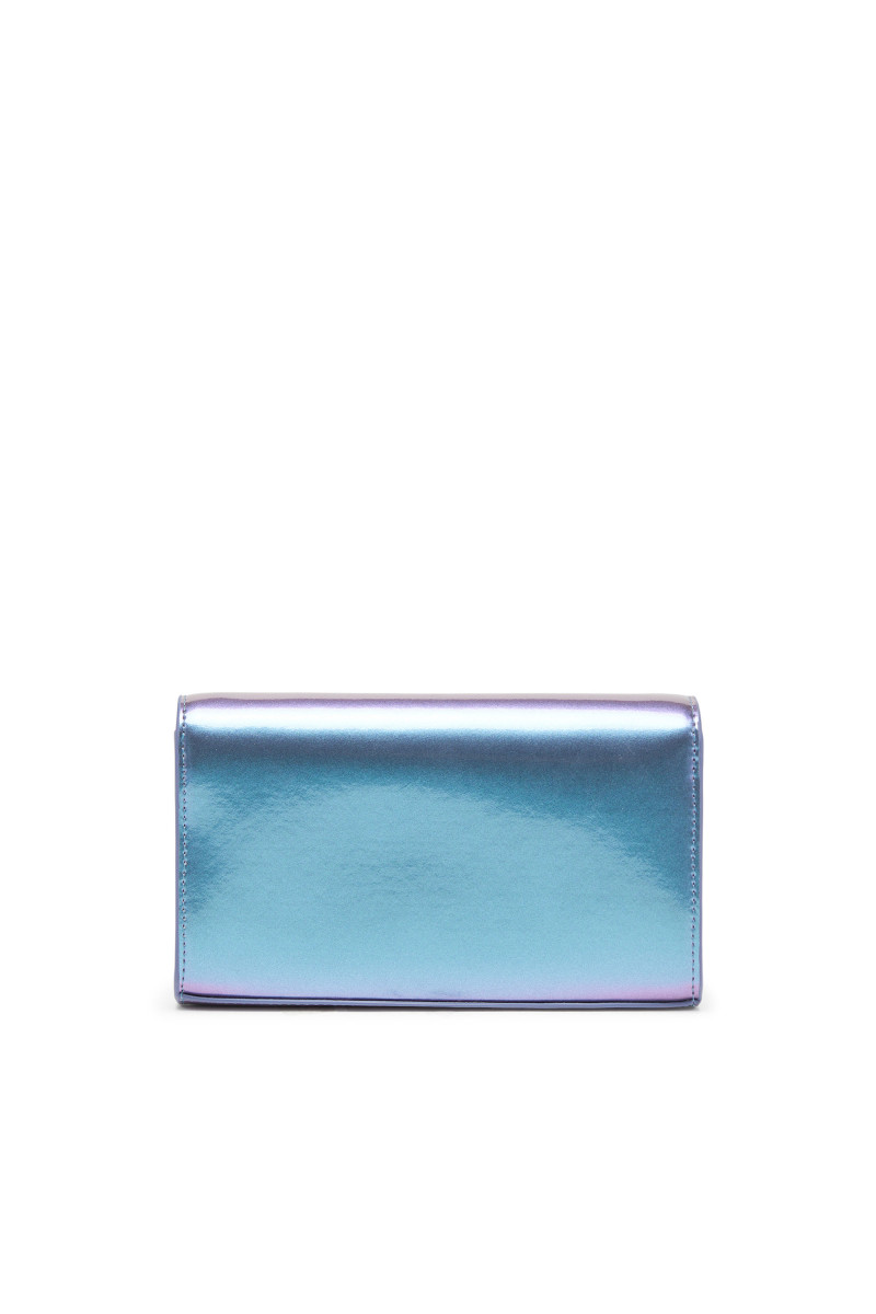 Dámská maxi peněženka v oblíbeném stylu peněženky na řetízku. Díky odnímatelnému a délkově nastavitelnému koženému řemínku skvěle poslouží i jako mini psaníčko. Zdobí ji duhový odstín s výraznou kovovou plaketou Oval D, která identifikuje ikonickou kabelku 1DR. Vyrobeno z lesklé zrcadlové technické kůže. Obsahuje pět vnitřních přihrádek a osm slotů na karty. K dispozici je praktická kapsa na zip na mince.