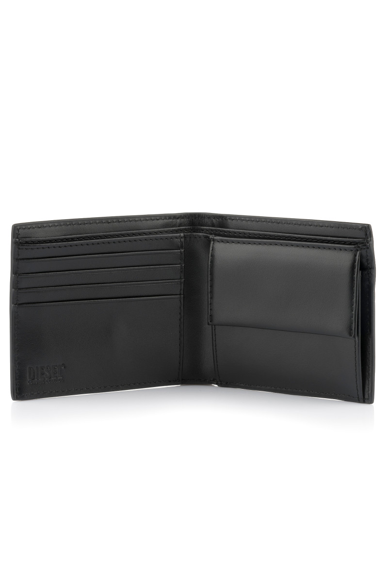 Pánská peněženka z lesklé a odolné hovězí kůže s hladkým povrchem, kterou na přední straně zdobí nenápadné logo Diesel. Peněženka má 4 přihrádky na karty nebo doklady, přihrádku na bankovky a mince se zapínáním. Prémiové materiálové složení vyniká měkkostí, ale zároveň odolností a pevností. Maximálně praktický a vkusný doplněk, který podtrhne váš styl.