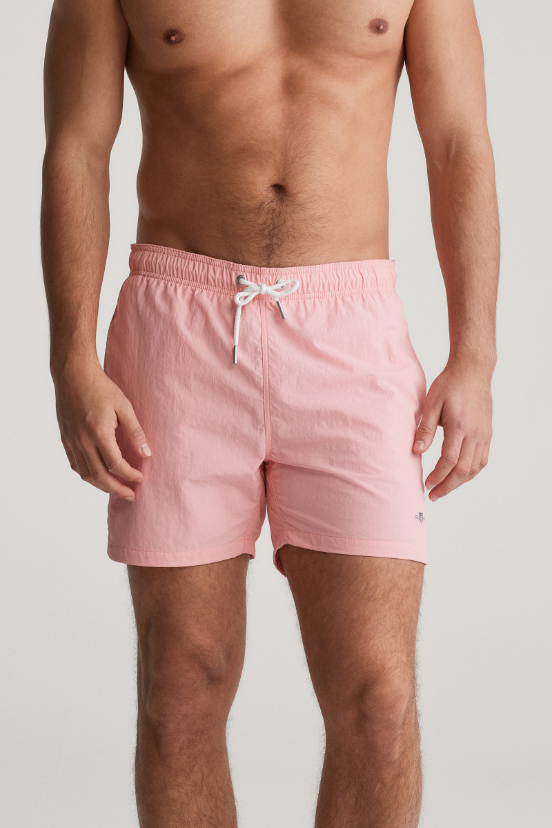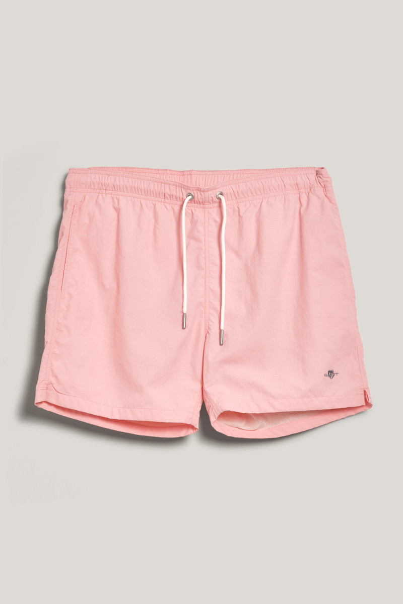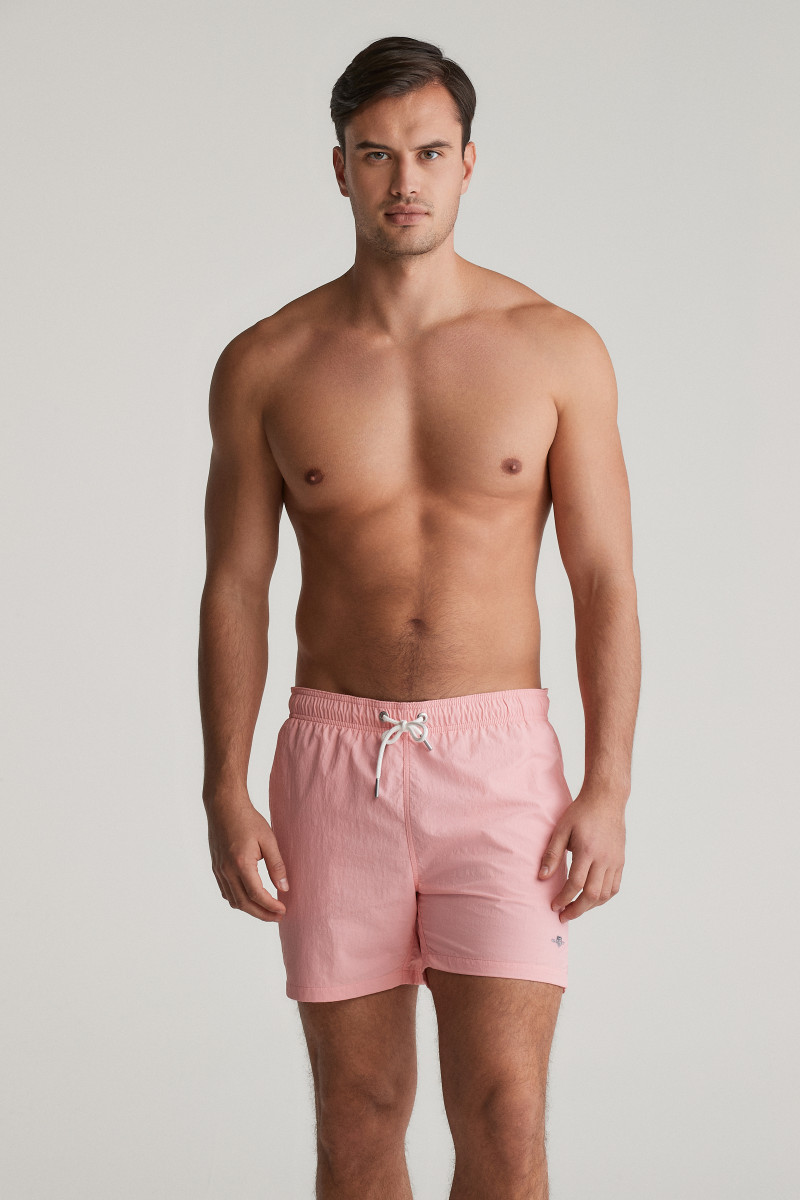 Pánské plavky s ikonickou výšivkou loga značky Gant umístěnou nad spodním lemem levé nohavice. Velmi pohodlný kraťasový střih s délkou nohavic do půli stehen doplňuje standardní výška sedu a pružný, variabilně stahovatelný pas na tkaničku. Samozřejmostí jsou dvě šikmé boční, jedna zadní nakládaná kapsa a podšívka ze síťoviny. Nechybí ani efektní detail ok umístěn na zadní části, která brání naplnění plavek vzduchem při skoku do vody. Odolné, avšak lehké materiálové složení je příjemně měkké na omak a vyniká svou rychleschnoucí schopností. Praktický artikl, bez kterého se parné letní dny u vody neobejdou.