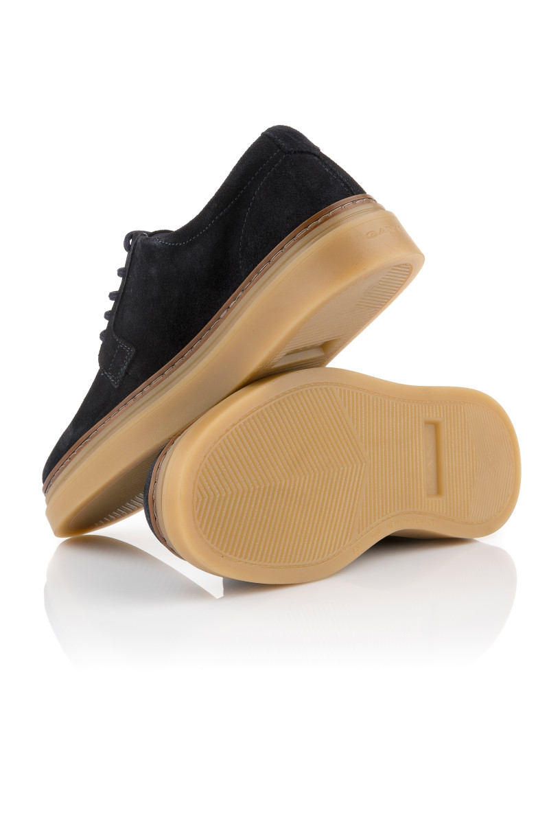 Pánské, ležérně-elegantní polobotky z broušené usně prémiové kvality. Vytlačený nápis brandu na boční straně pod šněrováním. Vkusné prošívání, jenž koresponduje s barevným provedením odolného svrchního materiálu, který vyniká svou sametovou hebkostí. Prodyšné textilní podšití, přizpůsobivá kožená stélka, lehká a při chůzi extrémně poddajná podešev z kvalitního pryže. Vysoce komfortní typ obuvi, který se stane velmi oblíbenou součástí každodenních outfitů.