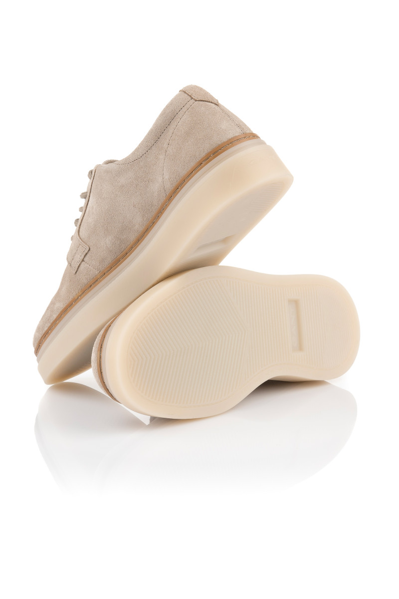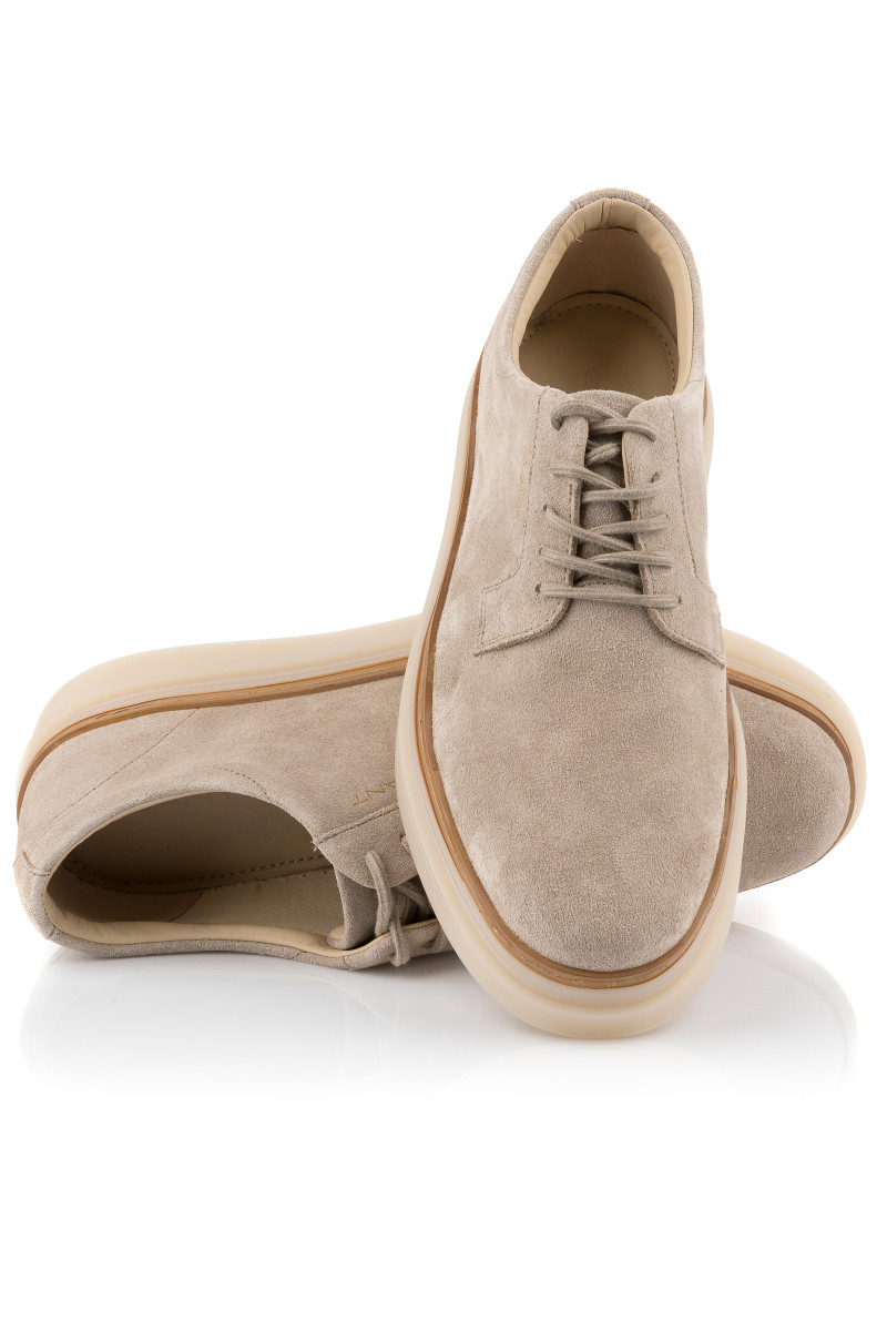 Pánské, ležérně-elegantní polobotky z broušené usně prémiové kvality. Vytlačený nápis brandu na boční straně pod šněrováním. Vkusné prošívání, jenž koresponduje s barevným provedením odolného svrchního materiálu, který vyniká svou sametovou hebkostí. Prodyšné textilní podšití, přizpůsobivá kožená stélka, lehká a při chůzi extrémně poddajná podešev z kvalitního pryže. Vysoce komfortní typ obuvi, který se stane velmi oblíbenou součástí každodenních outfitů.