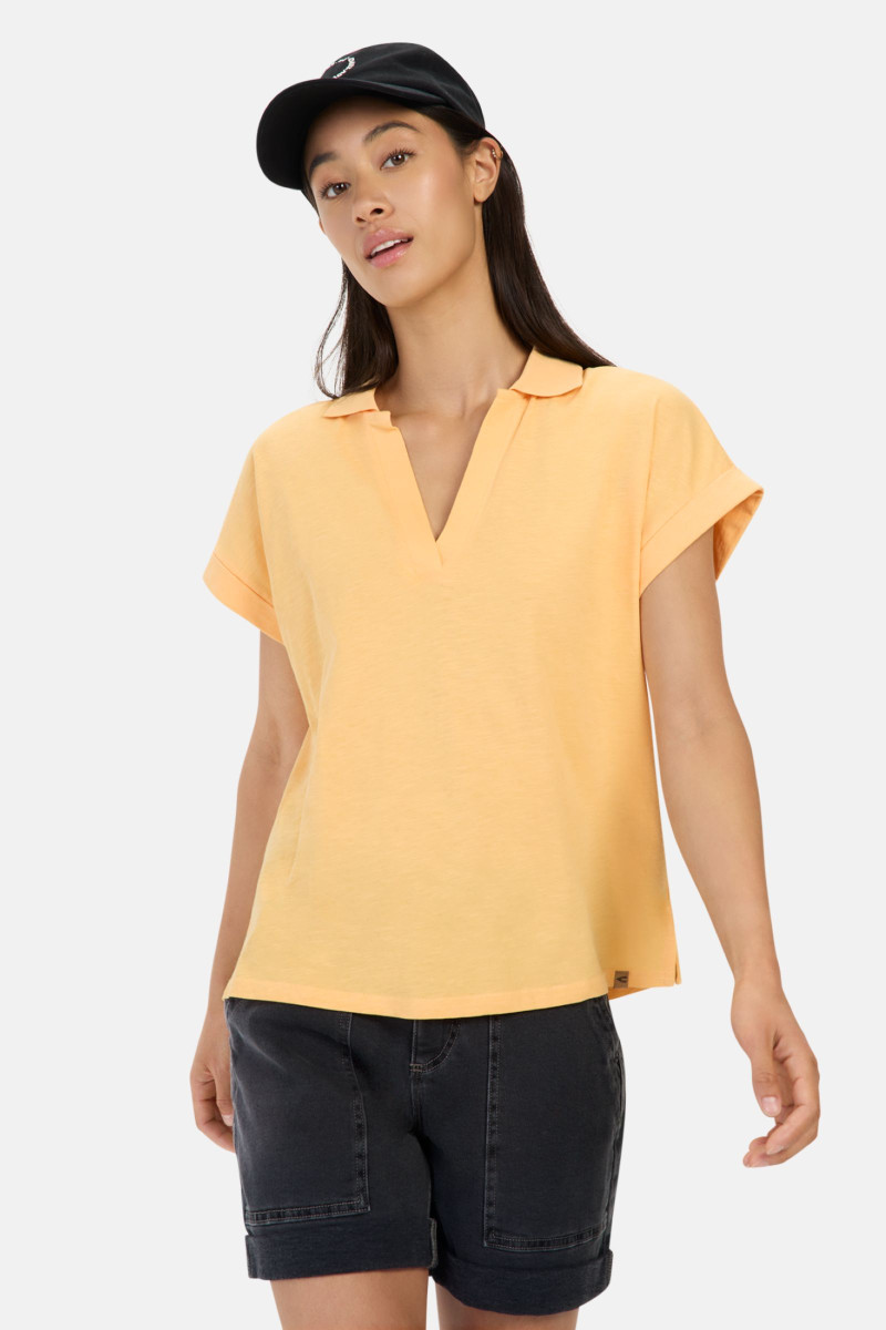 Dámské polotriko s krátkým rukávem. Rovný střih, decentní logo našité na spodním lemu, rozparky na boku, žebrovaný úplet na límečku. 100% bavlna je zárukou maximální prodyšnosti, pohodlí a snadné údržby. Sportovně elegantní kousek, který bude vypadat dokonale stylově v jakémkoli neformálním outfitu.