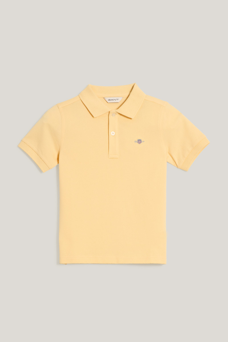 Dětské krátkorukávové tričko s límečkem a légou na knoflíky. Rovný, velmi pohodlný střih zdobí ikonické logo značky Gant vyšité na hrudi. Materiálové složení příjemně měkkého, dokonale prodyšného piké žerzeje je tvořeno 100% podílem bavlněného vlákna prémiové kvality, které je zárukou vysoce komfortního pocitu v průběhu nošení. Všestranně kombinovatelná, nadčasová klasika, jenž představuje nenahraditelnou součást ležérně-elegantních outfitů všech věkových generací.