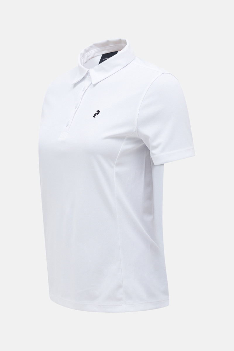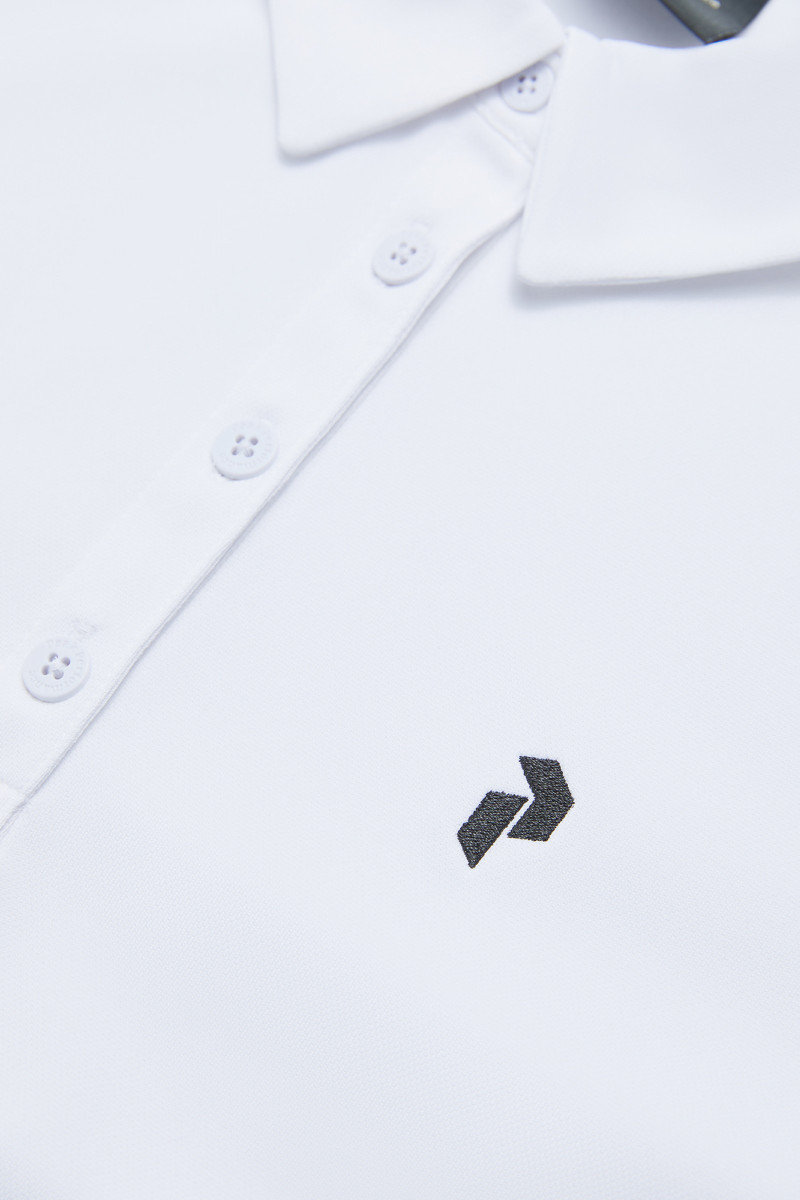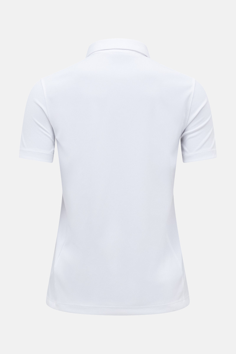 Dámské sportovní polotričko s krátkými rukávy. Úzký střih s bočními švy na předním a zadním dílu pro jemné zdůraznění ženské siluety doplňuje zapínání na knoflíky na límci a vyšívané brand logo na hrudi. Materiálové složení bez úmyslného přidání PFAS z velmi lehkého a rychleschnoucího materiálu, který byl vyroben z částečně recyklovaných materiálů, a celkové zpracování zaručuje dokonalý komfort při nošení a skvělé funkční vlastnosti. Velmi praktický a stylový kousek vhodný nejen na golf.
