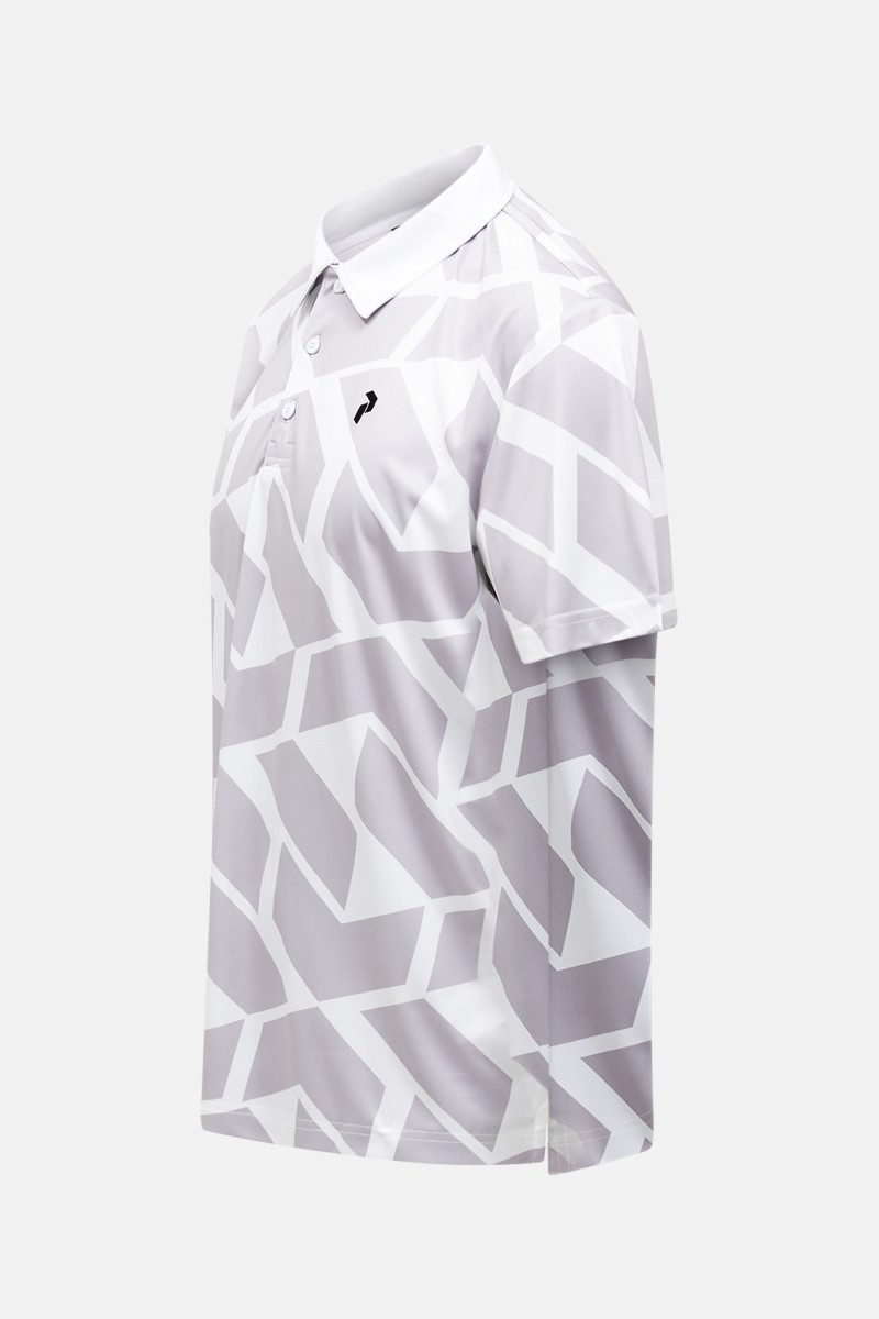Pánské sportovní polotričko s krátkými rukávy. Volný střih s mírně prodlouženou zadní částí, knoflíky na předním zapínání a sezónní potiskem po celém povrchu doplňuje dvouvrstvý límec, kontrastní brand logo na hrudi, štítek s logem našitý po straně a rozparky na bočních švech. Materiálové složení je z velmi lehkého, částečně recyklovaného a rychleschnoucího materiálu. Celkové zpracování zaručuje dokonalý komfort při nošení a skvělé funkční vlastnosti. Velmi praktický a stylový kousek vhodný nejen na golf.