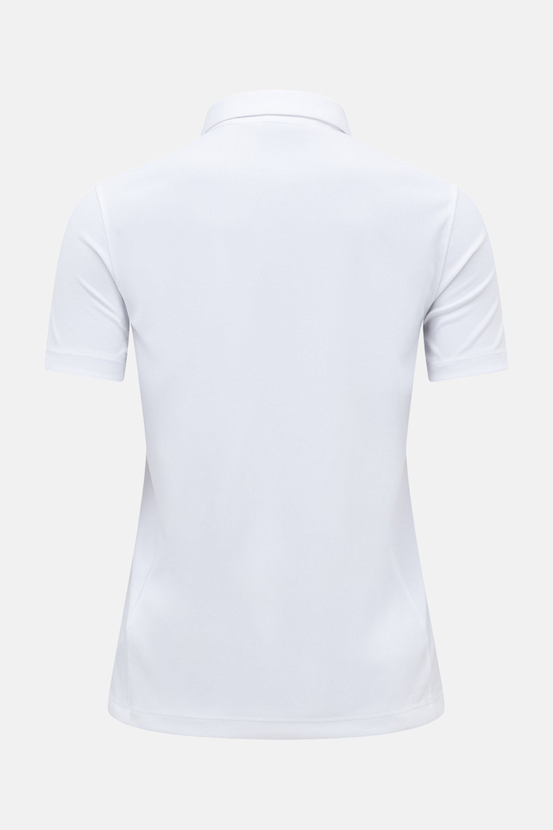 Dámské sportovní polo tričko s krátkým rukávem. Rovný střih s bočními švy na přední a zadní straně pro jemné zvýraznění ženské siluety, zapínání na knoflíky, které je umístněné na lége, logo značky vyšité na hrudi. Materiálové složení je z částečně recyklovaných syntetických vláken, která zaručují funkčnost a pohodlí. Tričko je mimořádně prodyšné, příjemné na dotek a snadno se udržuje. Velmi praktický a stylový kousek vhodný nejen na golf.