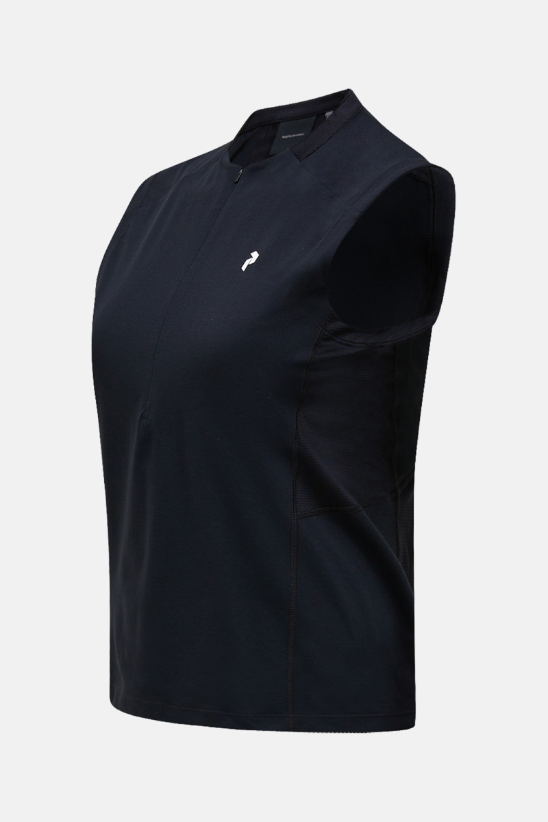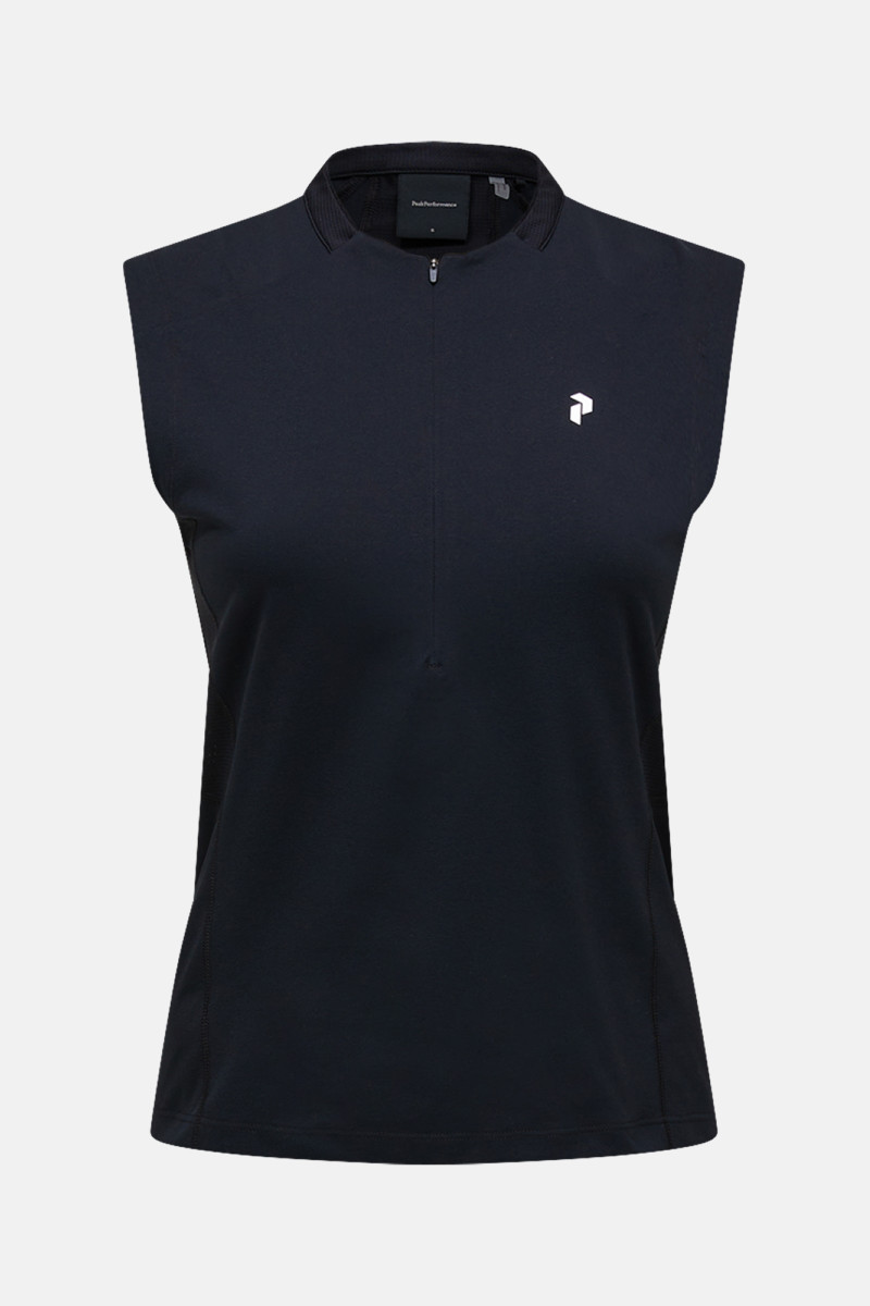 Dámské tričko bez rukávů. Úzký střih kopíruje přirozené křivky vašeho těla bez omezení pohybu a zapínání na neviditelný přední zip poskytuje nastavitelné větrání a čistý elegantní vzhled. Dalšími prvky jsou síťované větrání vzadu, silikonový potisk loga P na hrudi a silikonové logo Peak Performance na zadní straně. Tričko je vyrobeno z velmi jemného pružného a pohodlného materiálu. Materiálové složení bez úmyslného přidání PFAS a celkové zpracování zaručuje dokonalý komfort při nošení a skvělé funkční vlastnosti. Tričko je vyrobeno ze dvou výkonnostních materiálů, které spolupracují. Strečového síťovaného džerseje s otevřenou strukturou, která zlepšuje proudění vzduchu a polyesterového džerseje. Oba materiály odvádějí vlhkost a rychle schnou. Velmi praktický a stylový kousek vhodný nejen na golf.