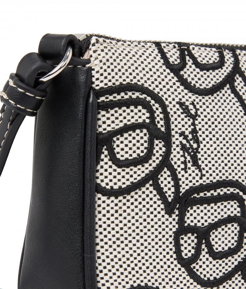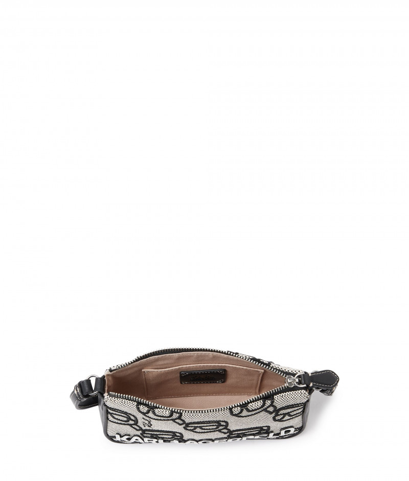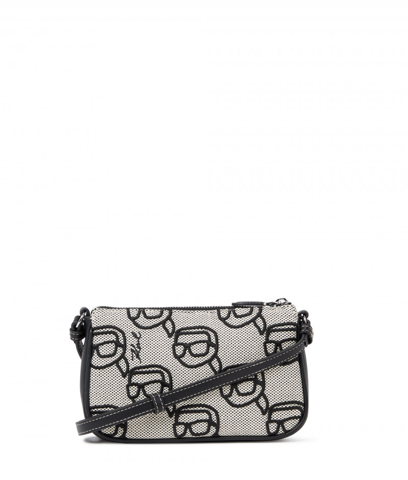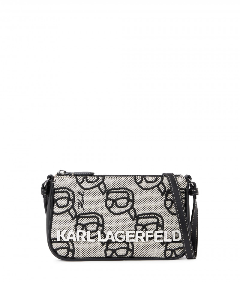 Dámská kabelka z kombinovaného materiálu, jejíž textilní povrch je ozdoben výšivkami K/Ikonik a logem KARL. Ležérně elegantní design se zapínáním na kovový zip ve stříbrné barvě doplňuje úzký prošívaný popruh přes rameno s nastavitelnou délkou. Bavlněný interiér je opatřen plochou kapsičkou a nášivkou s logem. Nezaměnitelně stylový sezónní doplněk, který bude ozdobou Vašeho outfitu.