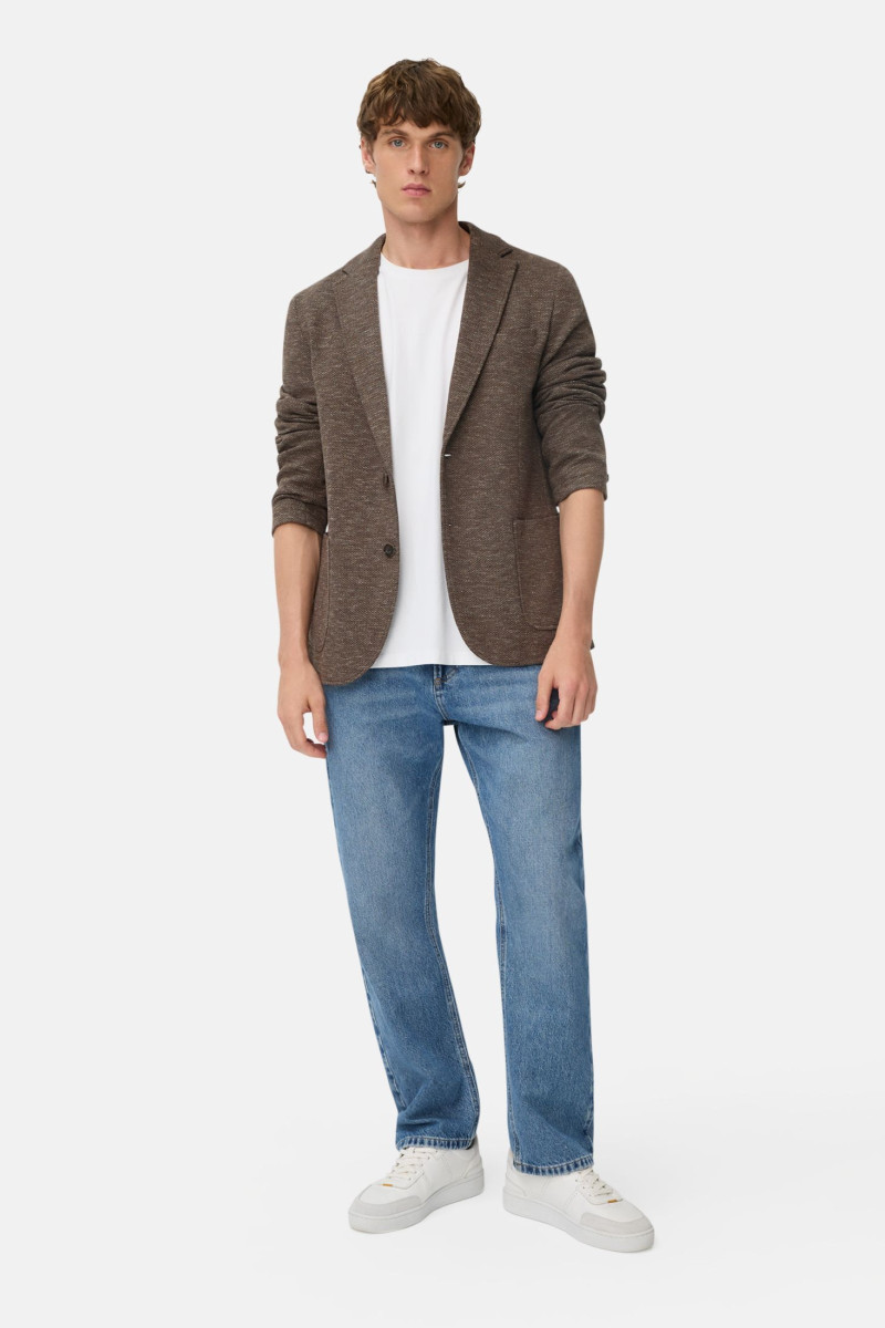 Pánské úpletové sako klasického střihu a délky. Vnější náprsní a dvě boční kapsy, zadní rozparek. Materiálové složení je tvořeno pružným a dokonale lehkým žerzejem z bavlněného vlákna prémiové kvality. Vysoce komfortní základ ležérně-elegantního stylingu, který je možné kombinovat s formálními pantsy, ale i denimovými kalhotami a sportovním trikem.
