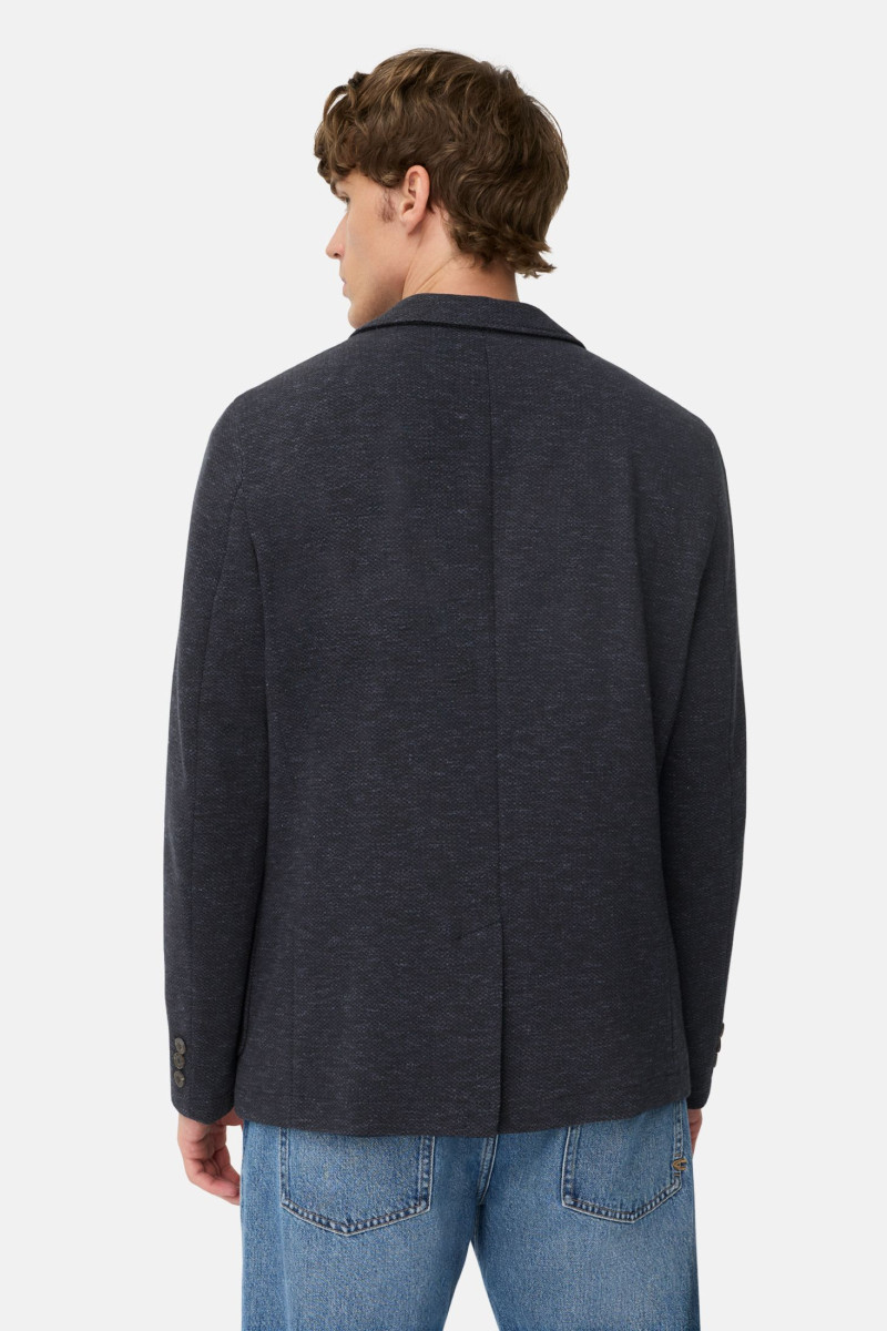 Pánské úpletové sako klasického střihu a délky. Vnější náprsní a dvě boční kapsy, zadní rozparek. Materiálové složení je tvořeno pružným a dokonale lehkým žerzejem z bavlněného vlákna prémiové kvality. Vysoce komfortní základ ležérně-elegantního stylingu, který je možné kombinovat s formálními pantsy, ale i denimovými kalhotami a sportovním trikem.