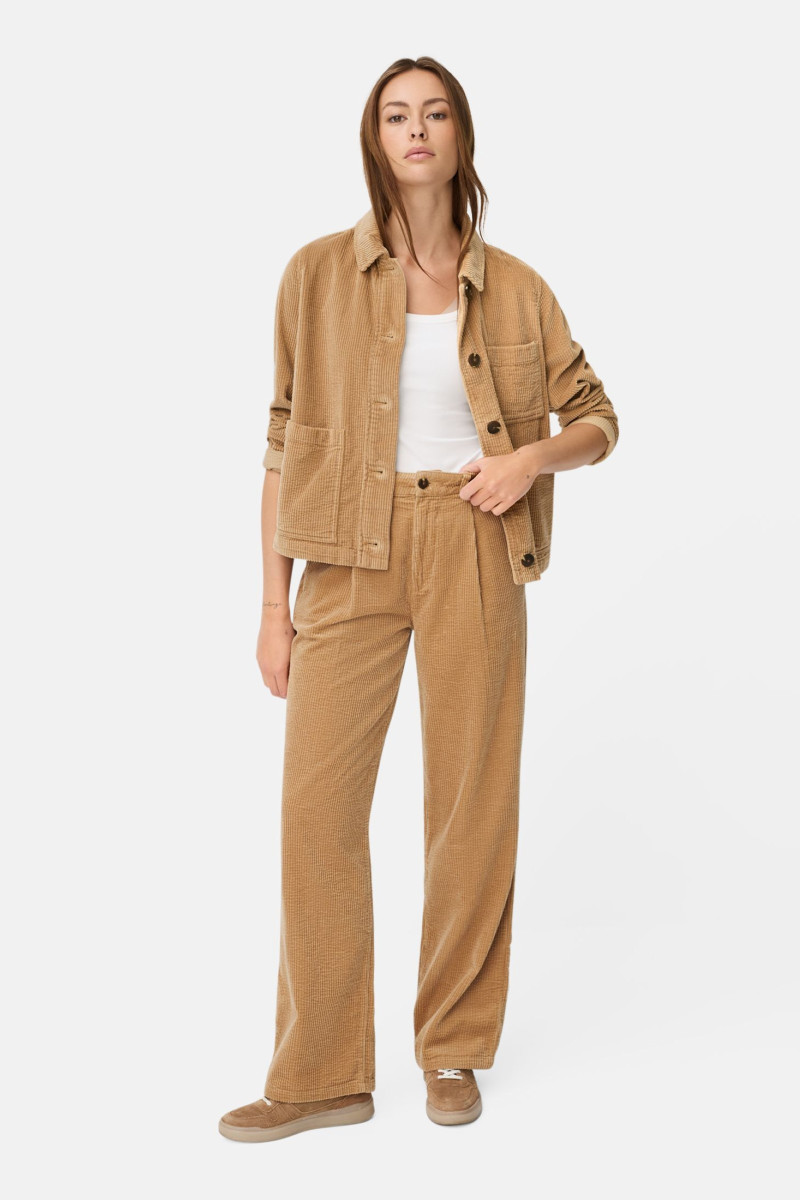 Dámské manšestrové sako rovného střihu. Sportovně-elegantní design s zapínáním na knoflíky kontrastní barvy doplňují výrazné nášivkové kapsy na přední straně. Charakteristicky strukturovaná tkanina s 100% podílem prémiové bavlny zaručuje dokonalou měkkost, prodyšnost a příjemný pocit při nošení. Velmi stylový kousek, který bude ozdobou vašeho podzimního outfitu.