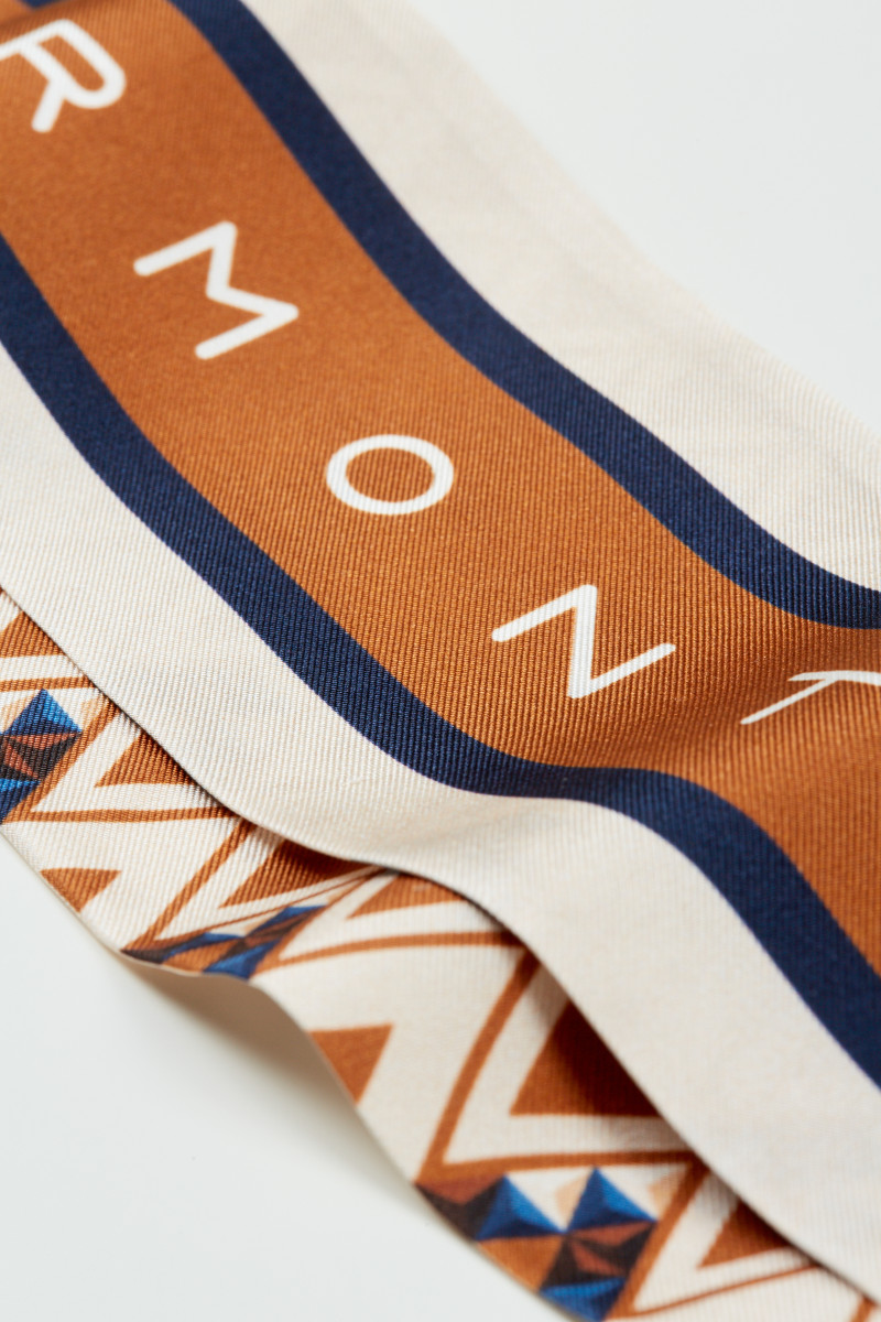 Exkluzivní dámský šátek z hedvábného vlákna. Luxusní původ elegantně splývavé tkaniny je zřejmý na první pohled. Prémiové materiálové složení vyniká svým signifikantním leskem a sametovou jemností. Prvotřídní zpracování originální vzoru, jenž byl návrháři speciálně vytvořen pro tuto limitovanou Vermont kolekci, se honosí jedinečnou harmonií barev. Unikátní doplněk, jenž umocní osobitost stylingu a podtrhne ženský šarm.