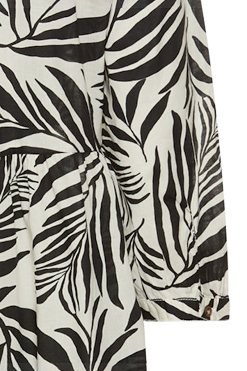Bavlněné dámské šaty s výstřihem do V a 3/4 rukávem. Splývavý střih, A sukně ke kotníkům. Materiálové složení je krásně měkké a lehké, příjemné na omak a pohodlné na nošení. Výrazný vzor v kombinaci s celkovým zpracováním vytváří dokonalý artikl, který podtrhne vaši ženskost.