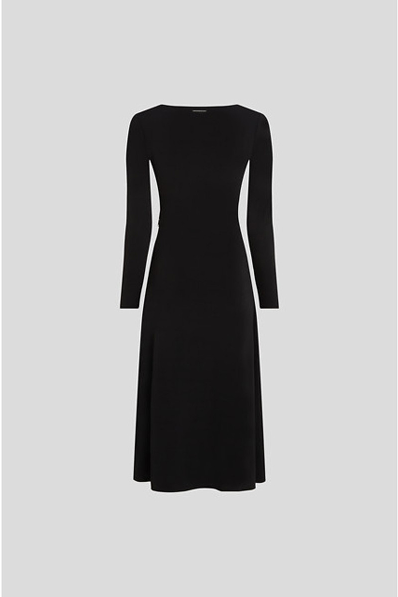 Exkluzivní dámské šaty s dlouhými rukávy a výstřihem do V. Rovný střih se zavinovací siluetou a rafinovaným řasením vpředu pro dokonalé zvýraznění ženské siluety. Sukně v délce do půlky lýtek. Splývavé, příjemně měkké materiálové složení prémiového původu zaručuje dokonalou vzdušnost a velmi příjemný pocit během nošení. Ležérně-elegantní kousek, který je vhodný téměř na jakoukoliv společenskou událost a ve kterém vynikne váš ženský šarm a půvab.