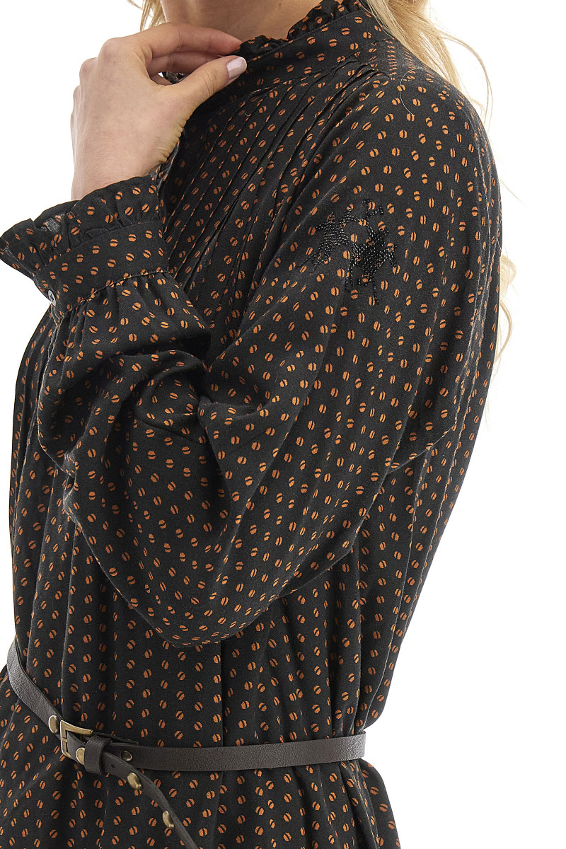 Dámské šaty jsou vyrobeny ze 100% hebké a lehké viskózy pro pohodlí a univerzálnost. Díky klasickému střihu z řady Argentina pasují každé postavě. Potisk v kontrastní barvě dodává elegantnímu jednobarevnému designu dotek originality. Rovný límec se zapíná na 3 knoflíky, dalším výrazným prvkem je nášivka s logem na zádech. S dlouhými rukávy s klopou a zapínáním na knoflíky jsou šaty univerzálním kouskem, který se hodí pro mnoho příležitostí.