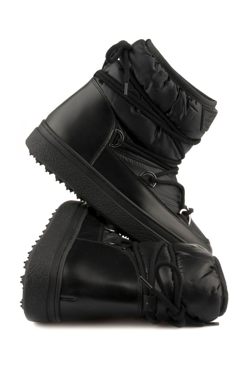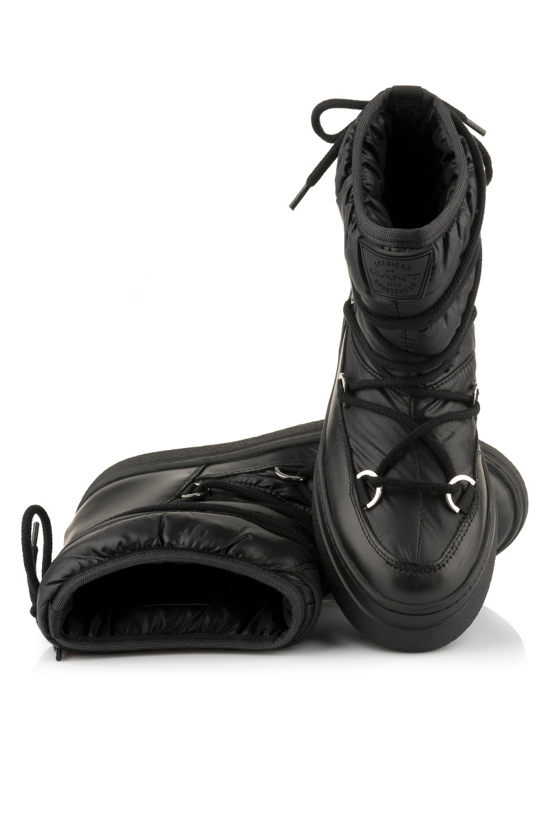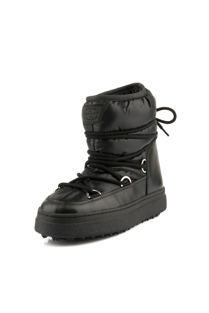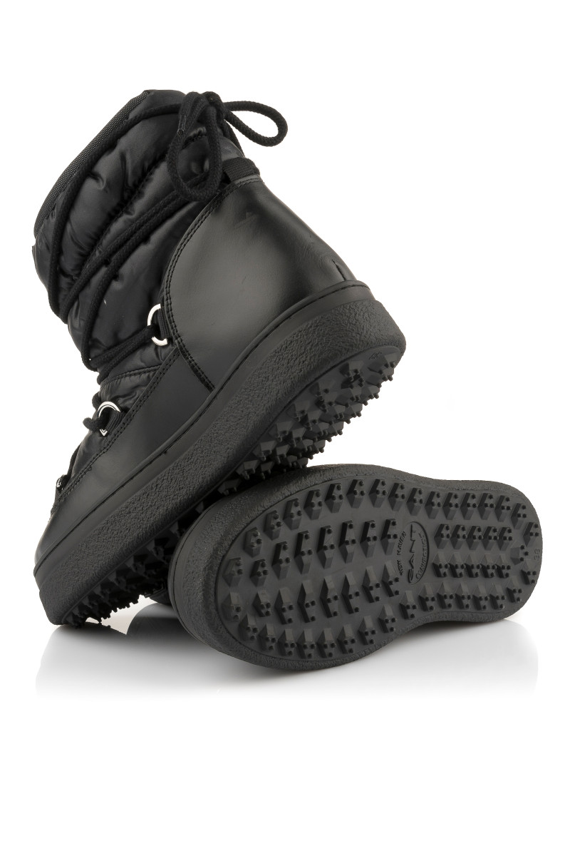 Zimní kotníčkové boty z kombinovaného materiálu. Tonální panely z hladké hovězí usně a prošívaného nylonu doplňuje pružný lem nad kotníkem, tkanička na šněrování a zvýšená pryžová podrážka se strukturovaným vzorem. Nechybí nášivka s logem Gant umístěná na přední straně. Hřejivý vlněný interiér zaručuje maximální komfort i v těch nejchladnějších dnech. Dokonale stylová a praktická obuv, která bude ozdobou vašeho zimního outfitu.