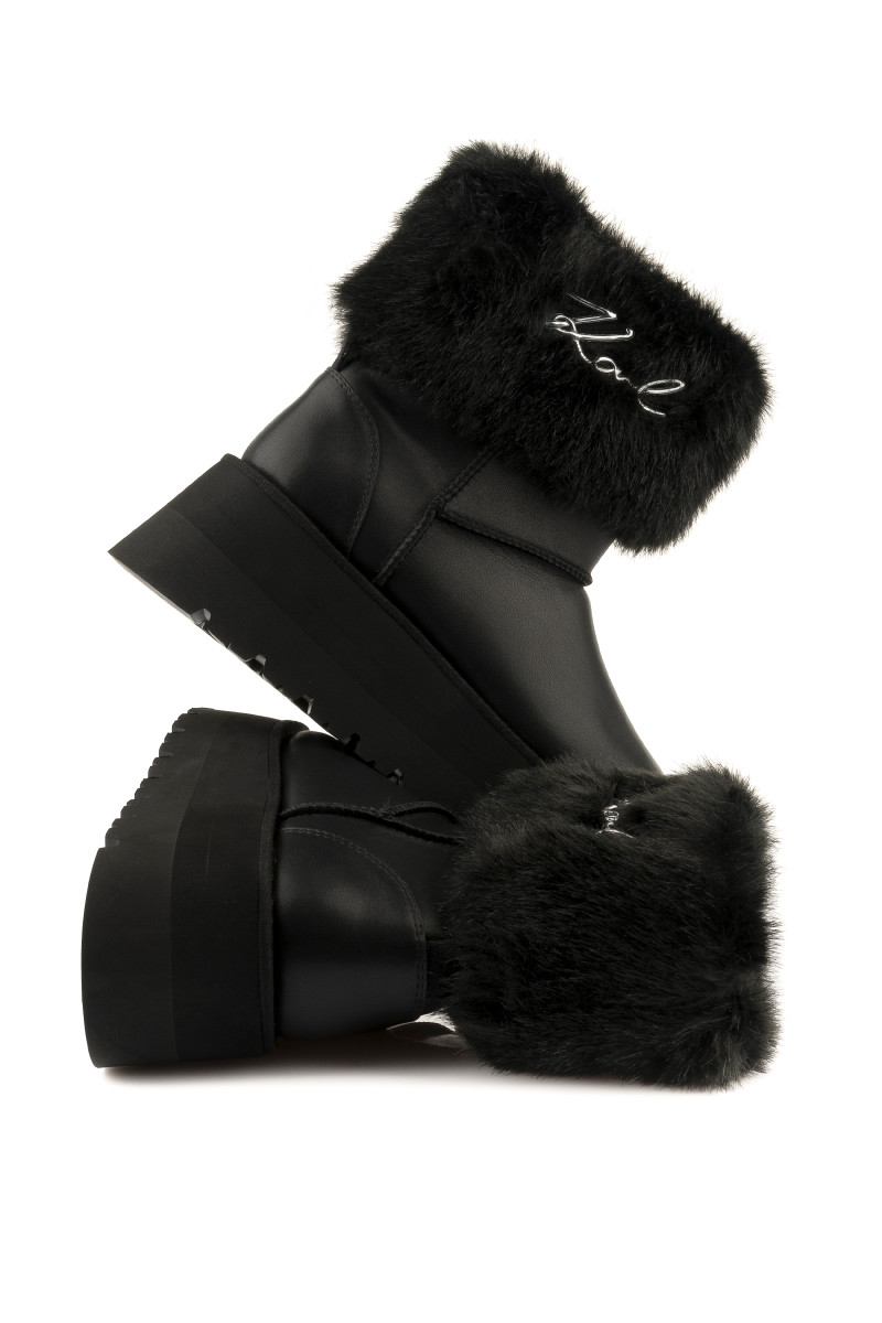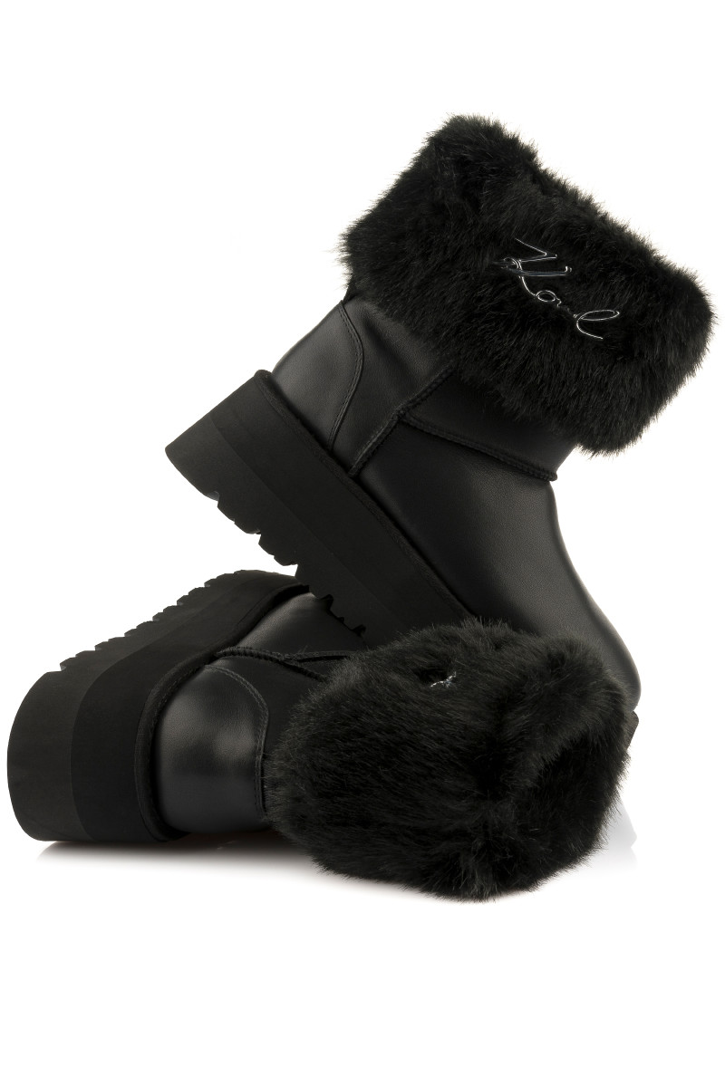 SNĚHULE KARL LAGERFELD SKYLAR SIGNIA KOLLAR MID BOOT BLACK LTHR & TEXTILE