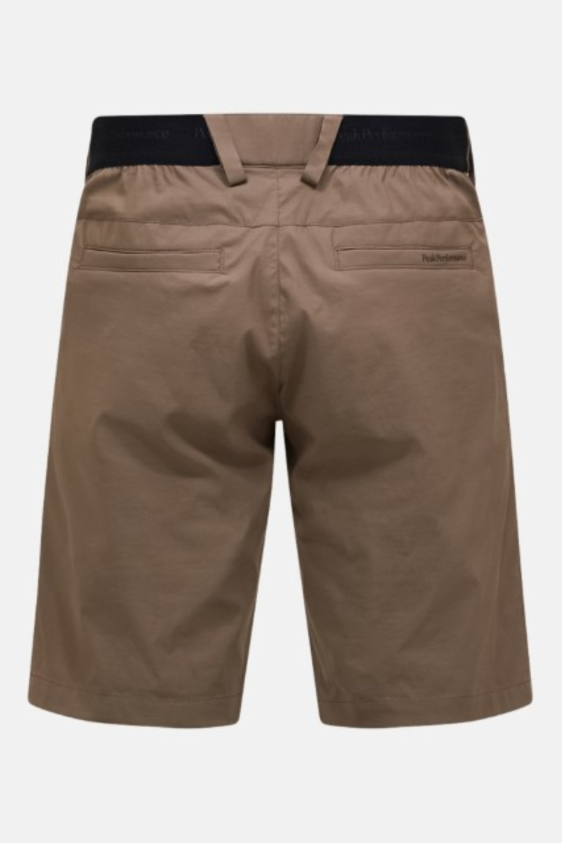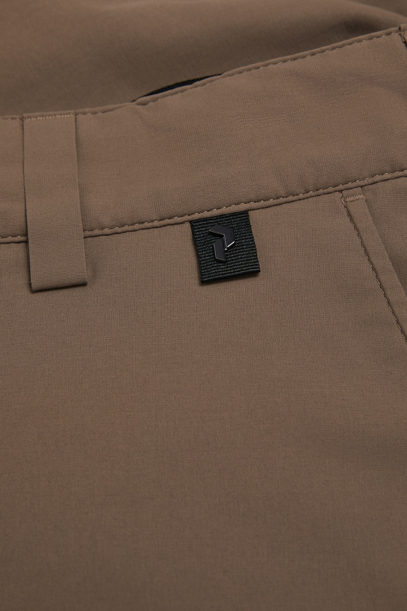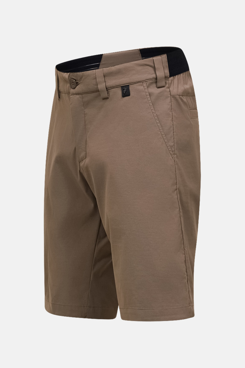 Pánské golfové šortky. Přiléhavý střih s délkou nad kolena, zapínání nohavic na kvalitní rohovinový knoflík a s poutky na opasek doplňuje pružný pás v oblasti zad s protiskluzovou potiskem na vnitřní straně, boční otevřené kapsy, zadní výpustkové kapsy, štítek značky našitý na boku. Šortky jsou z velmi pohodlného, rychleschnoucího a pružného materiálu, který byl vyroben z částečně recyklovaných syntetických vláken s použitím trvalé vodoodpudivé úpravy bez PFC. Materiálové složení a celkové zpracování zaručují dokonalý komfort při nošení a skvělé funkční vlastnosti. Velmi praktický a stylový kousek vhodný nejen na golf.