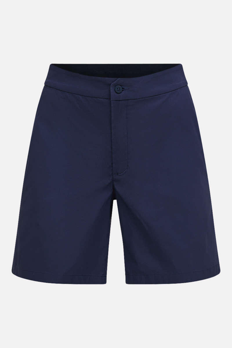 Dámské golfové šortky. Přiléhavý střih s délkou do poloviny stehen, zapínání na nohavicích s kvalitním rohovým knoflíkem a poutky na pásek doplňuje pružný pás v oblasti zad s protiskluzovým potiskem na vnitřní straně, boční otevřené kapsy, zadní výpustkové kapsy, štítek značky našitý na boku. Šortky jsou z velmi pohodlného, rychleschnoucího a pružného materiálu, který byl vyroben z částečně recyklovaných syntetických vláken s použitím trvalé vodoodpudivé úpravy bez PFC. Materiálové složení a celkové zpracování zaručují dokonalý komfort při nošení a skvělé funkční vlastnosti. Velmi praktický a stylový kousek vhodný nejen na golf.