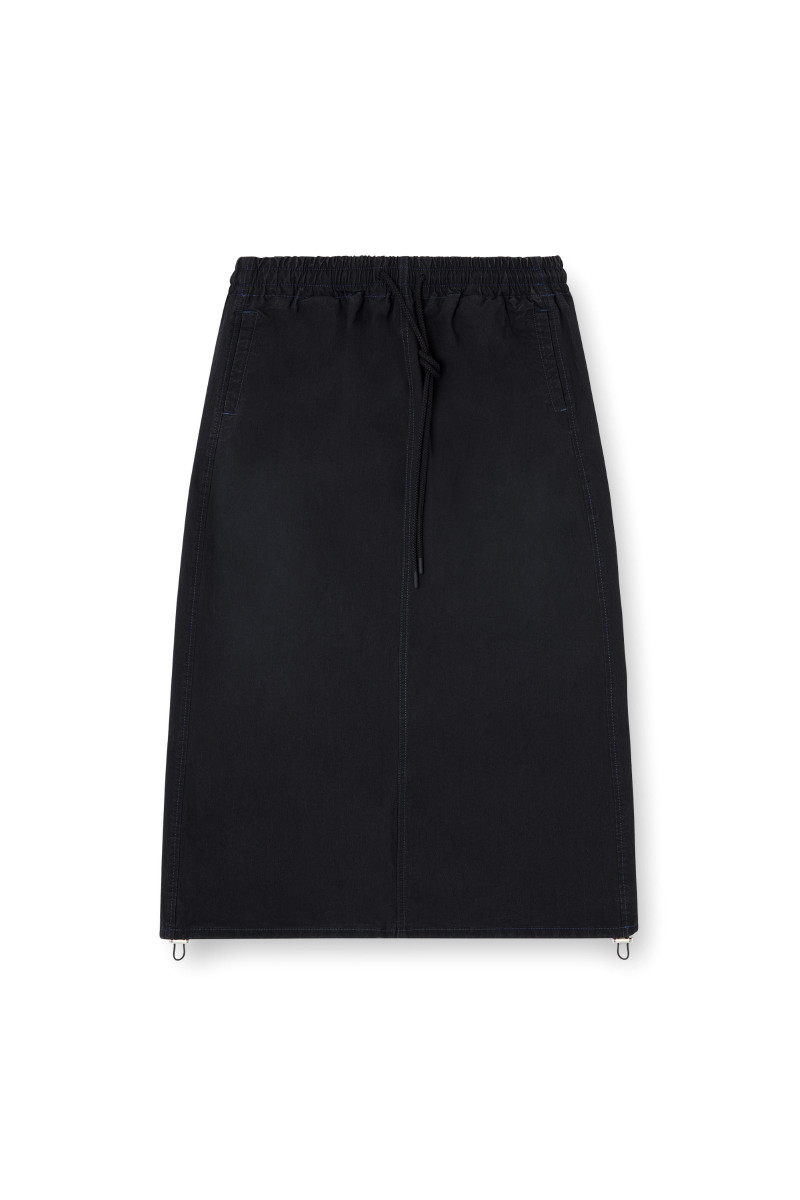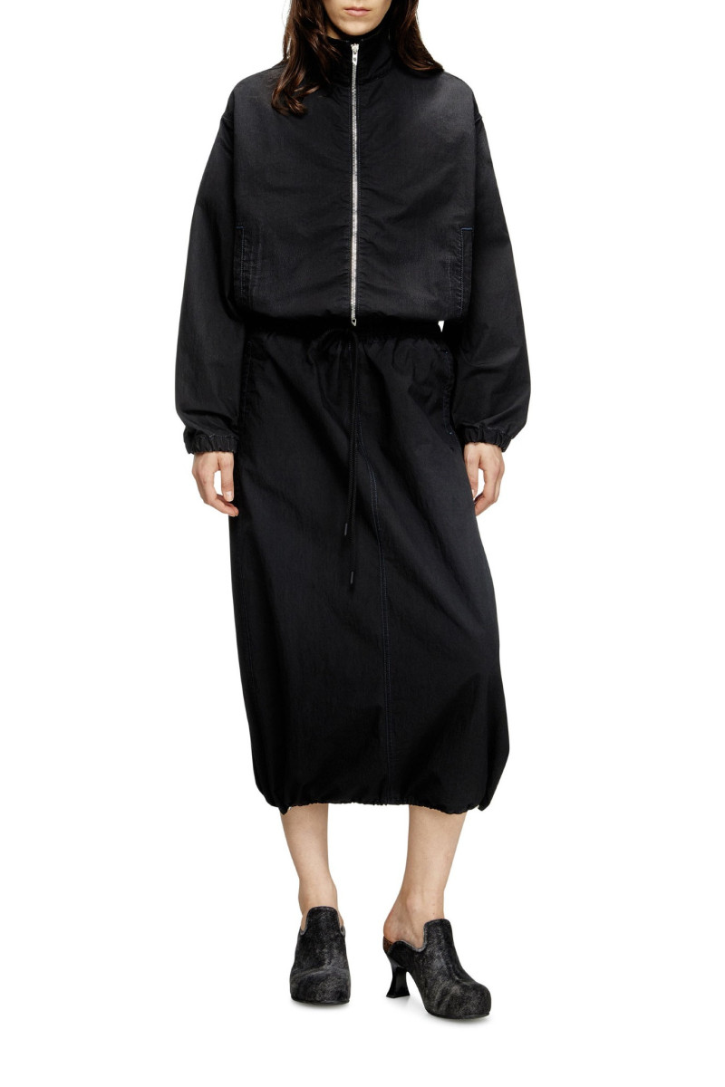 Dámská sukně. Vyrobená z totožného materiála jako oblíbené džíny značky Diesel JoggJeans, pro maximální pohodlí a autentický denimový vzhled. Střih s elastickým pasem se stahovací šňůrkou a středně dlouhou siluetou do tvaru A. Černá plátěná tkanina kombinuje technický vzhled s lehkým komfortním pocitem. Jemná textura připomíná plachtovinu, zatímco barevný wash vytváří čistý, lehce obnošený denimový efekt. Vyrobena z 50% ,,rehab" bavlny. Elastický pas se stahovací šňůrkou. Modelka má na sobě velikost S a měří 175 cm. Velikost odpovídá běžnému značení, při výběru zvolte své obvyklé číslo.