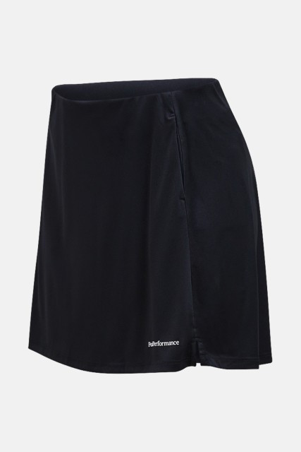 Dámská sportovní sukně. Áčkový střih do poloviny stehen, kapsy ve švu na ruce, elastický pas, boční rozparky a připojené spodní šortky doplňuje potisk Peak Performance na boku a spodním lemu. Materiálové složení z částečně recyklovaného, velmi příjemného, rychleschnoucího a pružného materiálu a celkové zpracování zaručují dokonalý komfort během nošení a skvělé funkční vlastnosti. Velmi praktický a stylový kousek vhodný nejen na golf.