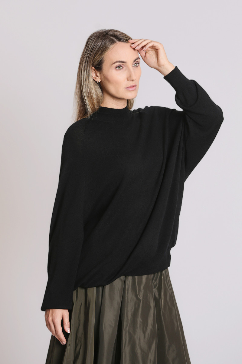 Dámský vlněný pulovr volného střihu. Jednobarevný design s praktickým stojáčkem doplňují žebrované lemy u krku, v pase a na raglánových rukávech. Materiálové složení se 100% podílem kvalitní merino vlny zaručuje dokonalou jemnost, hřejivost a neobyčejně příjemný pocit při nošení. Pulovr je lehký, nemačká se a nepohlcuje pachy. Tento nadčasový a výborně kombinovatelný kousek se stane nepostradatelnou součástí vašeho šatníku.