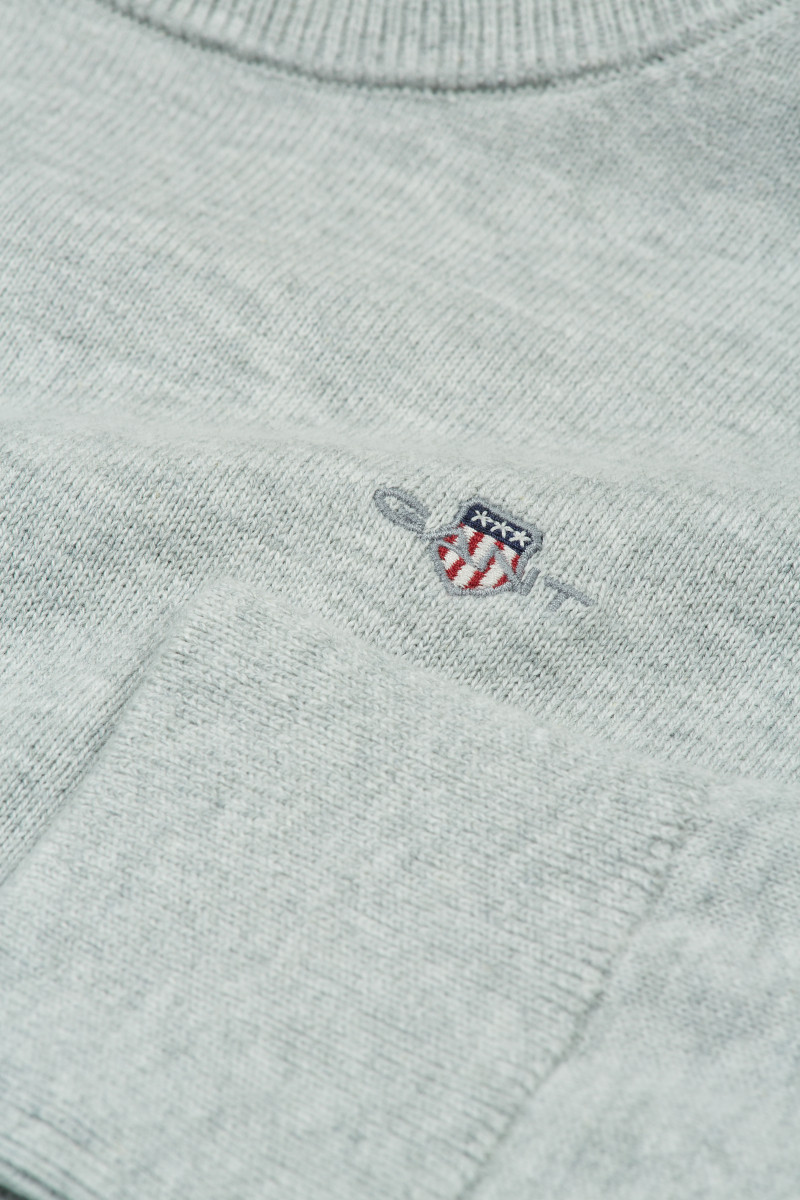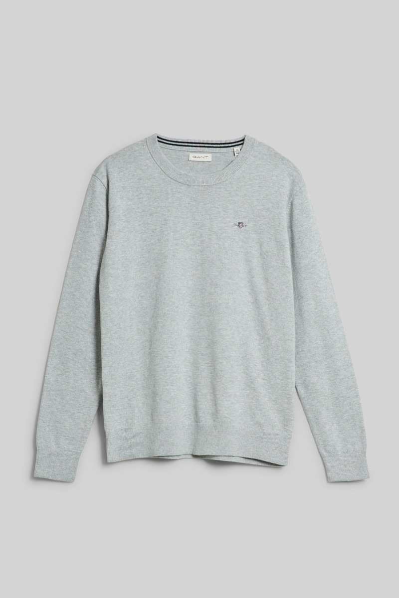 SVETR GANT SHIELD CLASSIC COTTON C-NECK LIGHT GREY MELANGE