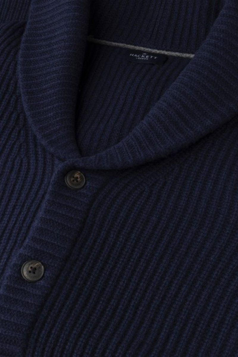 SVETR HACKETT LONDON RIB SHAWL CARDI MIDNIGHT BLUE