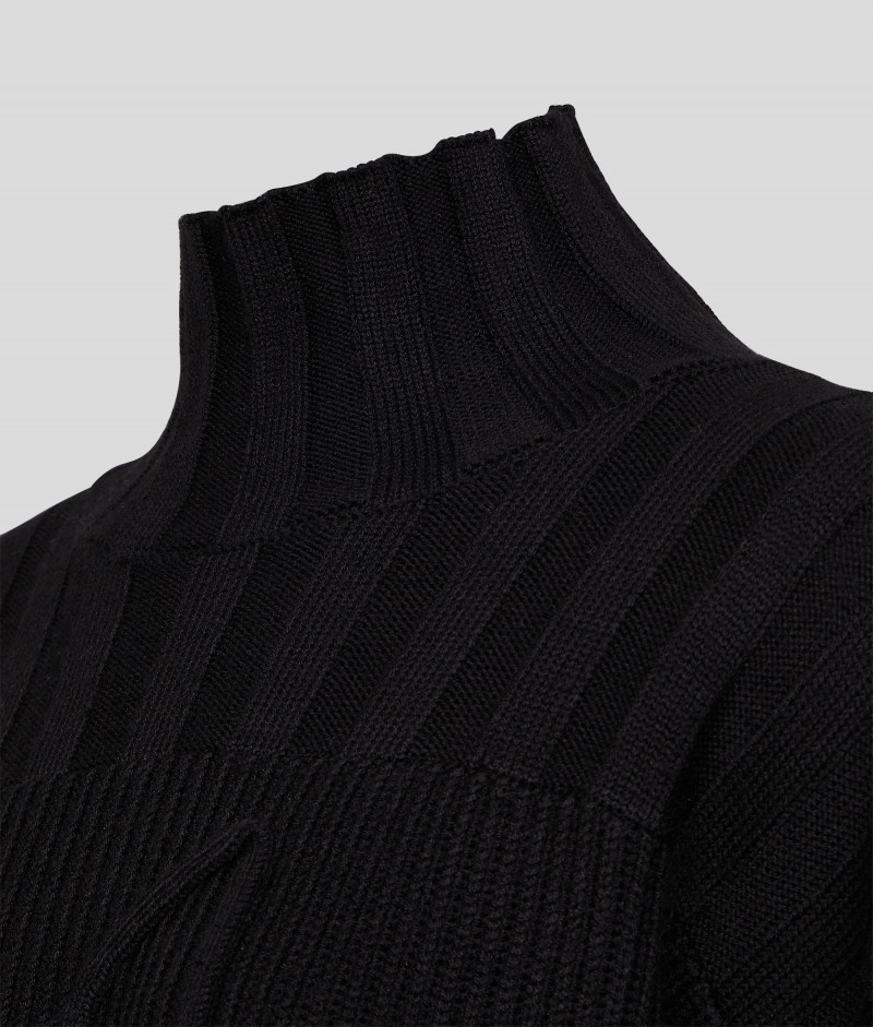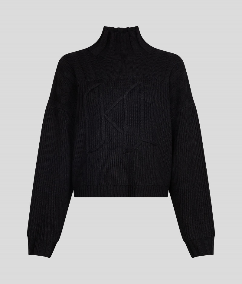 Robustní pletený svetr zdobí motiv KARL Monogram. Pohodlný doplněk do chladného počasí je zakončen rolákem a žebrovaným lemem a manžetami rukávů.