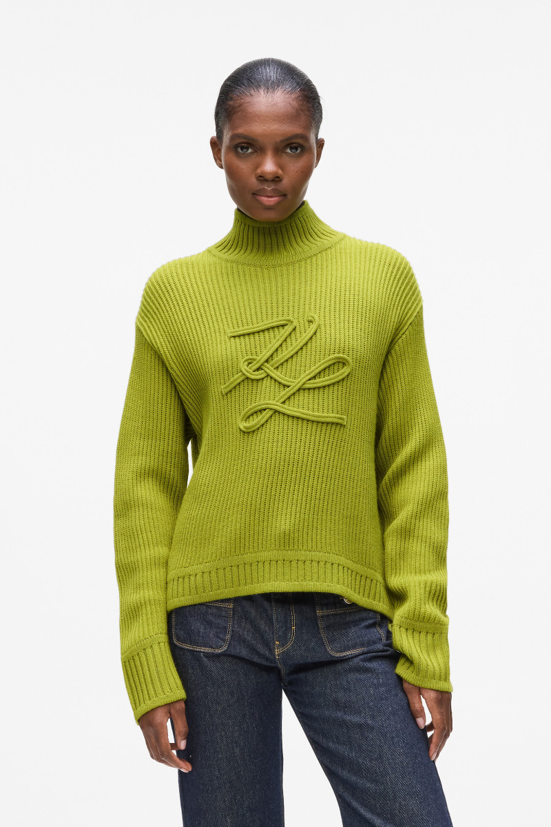 Dámský pletený svetr. Jednobarevný design, který je dokonale vytvořen s detaily z žebrového úpletu pro sofistikovaný dotek, je ozdoben výraznou výšivkou Karl Signature na hrudi a výrazným lemováním kolem krku, rukávů a v pase. Materiálové složení s podílem vlny zaručuje velmi příjemný pocit při nošení, skvělou prodyšnost a termoregulační vlastnosti. Maximálně pohodlný a zároveň moderní kousek, který dokonale vynikne v kombinaci se sukní splývavého střihu nebo s denimovými kalhotami.