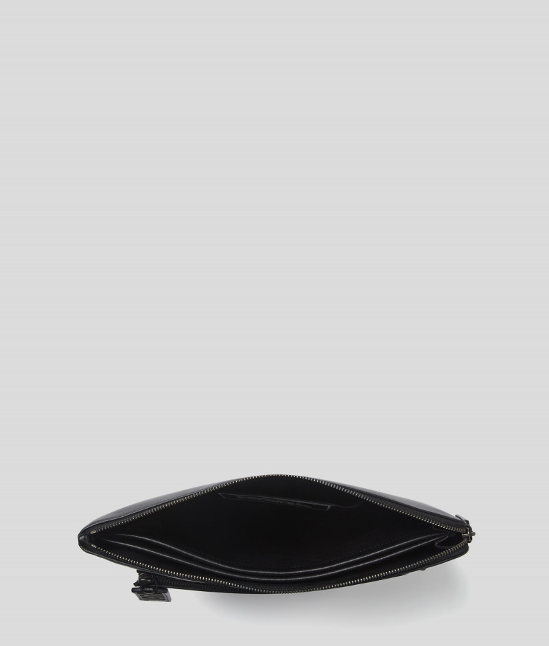 Nezbytné příslušenství pro stylovou přepravu notebooku. Toto pouzdro na notebook je vybaveno dvěma horními uchy a odnímatelným ramenním popruhem pro praktické použití, zatímco umělecké dílo KARL Ikonik dodává hravý detail.