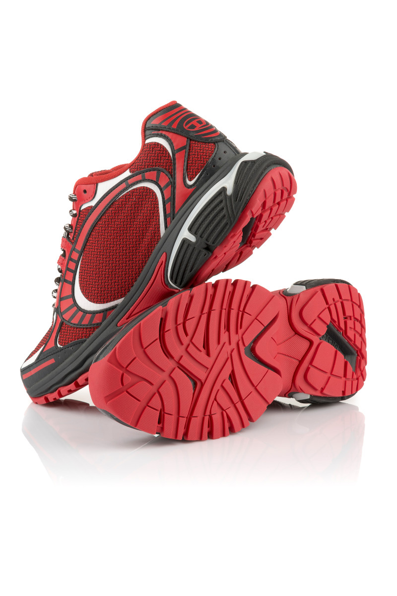 Pánské tenisky. Moderní sportovní konstrukce. Kontrastní červeno černá kombinace je okamžitě rozpoznatelná, díky výraznému ikonickému logu Oval D. Vyrobeny z prodyšné dvouvrstvé síťoviny zdobené PU. Masivní texturovaná podrážka zajišťuje pohodlí a přilnavost. Šněrování. Prodyšná podšívka.